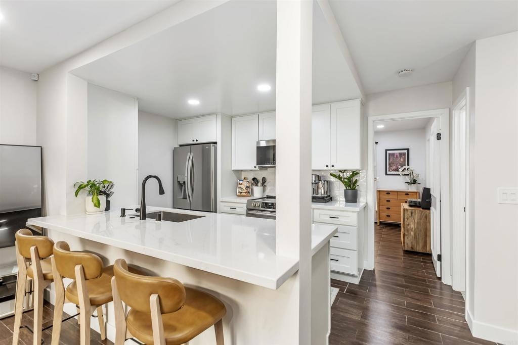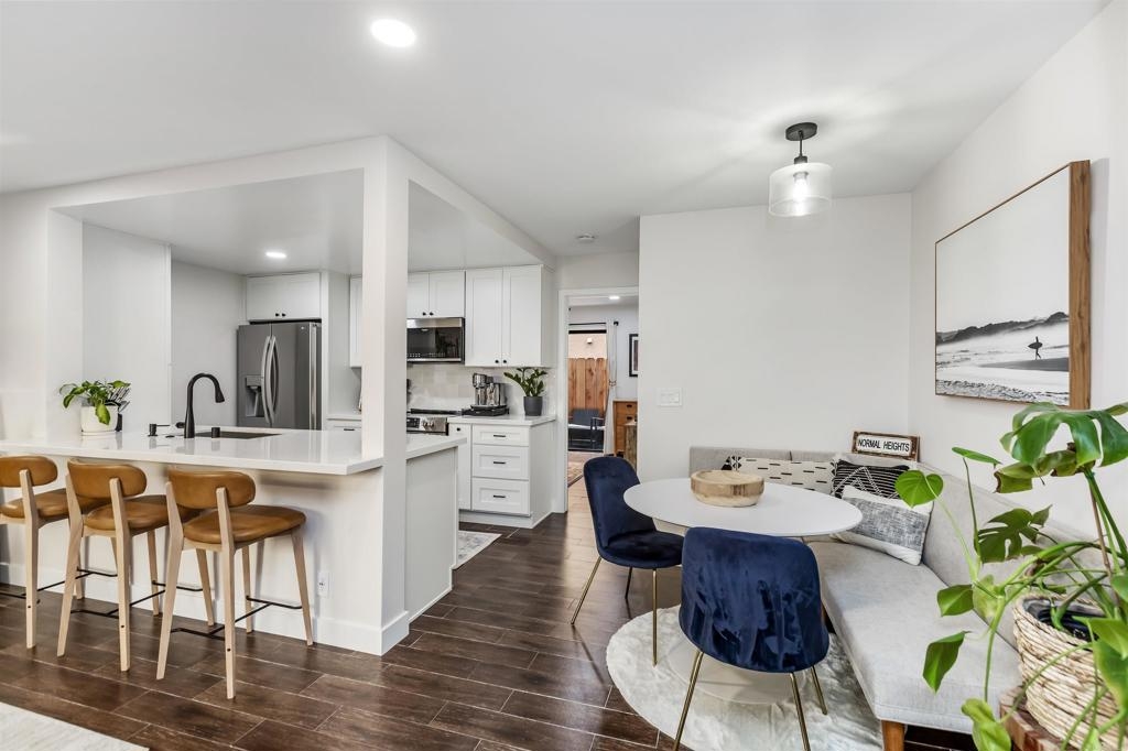 This is the condo you have been waiting for, just a short walk to all that Normal Heights has to offer! Recent upgrades include, remodeled kitchen with new appliances, remodeled bathrooms, split AC unit, recessed lighting, smart lights, electric fireplace, and much more! This unit also has an attached 1 car garage, additional parking spot, in-unit laundry, private patio, and gated access. Ideally located near major freeways, Adams Ave restaurants and shops, and just blocks away from North Park and Kensington.