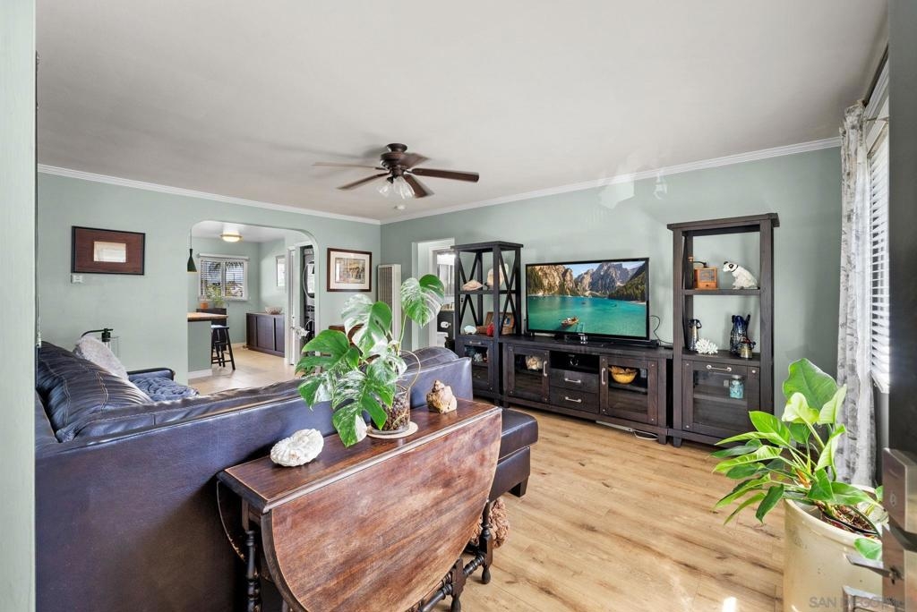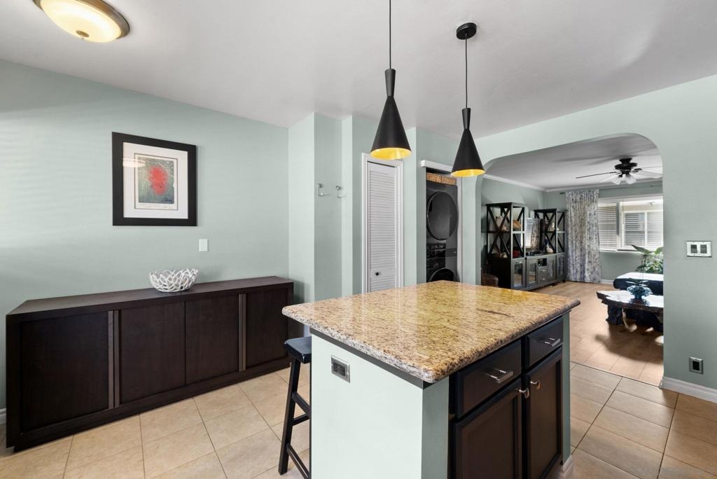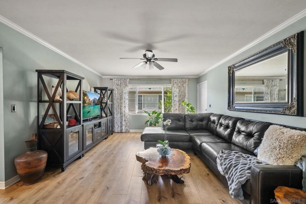 Welcome to this beautifully updated mid-century condo in the heart of Normal Heights! This beautifully updated 2-bedroom, 1-bath condo features the largest floor plan available in the complex. Perfectly located upstairs, it offers incredible privacy and an abundance of natural light. Recent upgrades include brand-new wide-plank laminate flooring throughout, adding a fresh and modern touch to this charming home. The open floor plan includes a spacious living area with crown molding, seamlessly flowing into an updated kitchen with granite countertops, a large island, stainless steel appliances, and a gas range. Additional highlights include full-size in-unit laundry and a private garage. Situated just steps from all that Adams Avenue has to offer, you’ll enjoy close proximity to trendy restaurants, cozy cafes, boutique shops, and some of the area’s most popular spots. This vibrant neighborhood also hosts exciting events like the Adams Avenue Street Fair, Rock ‘n’ Roll Marathon, and local tasting tours—all right at your doorstep! Don’t miss this opportunity to own a spacious, updated home in a highly sought-after community!