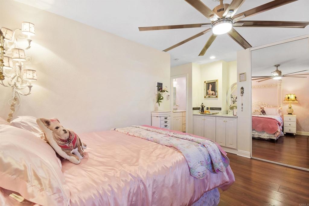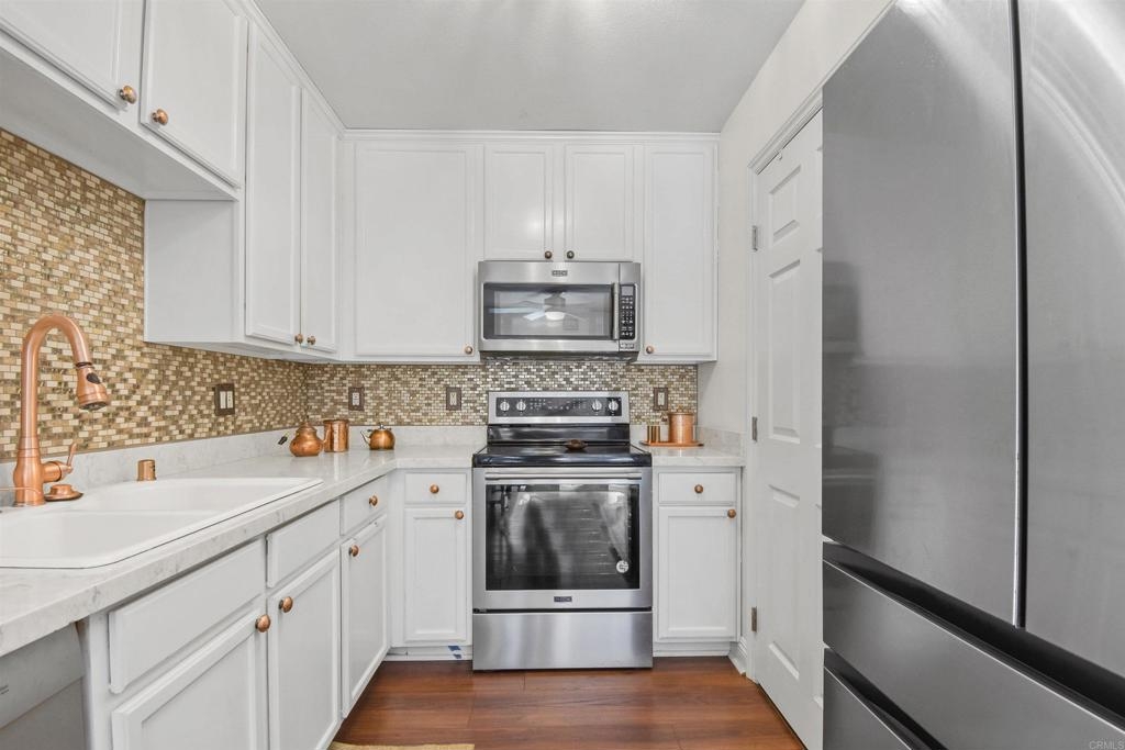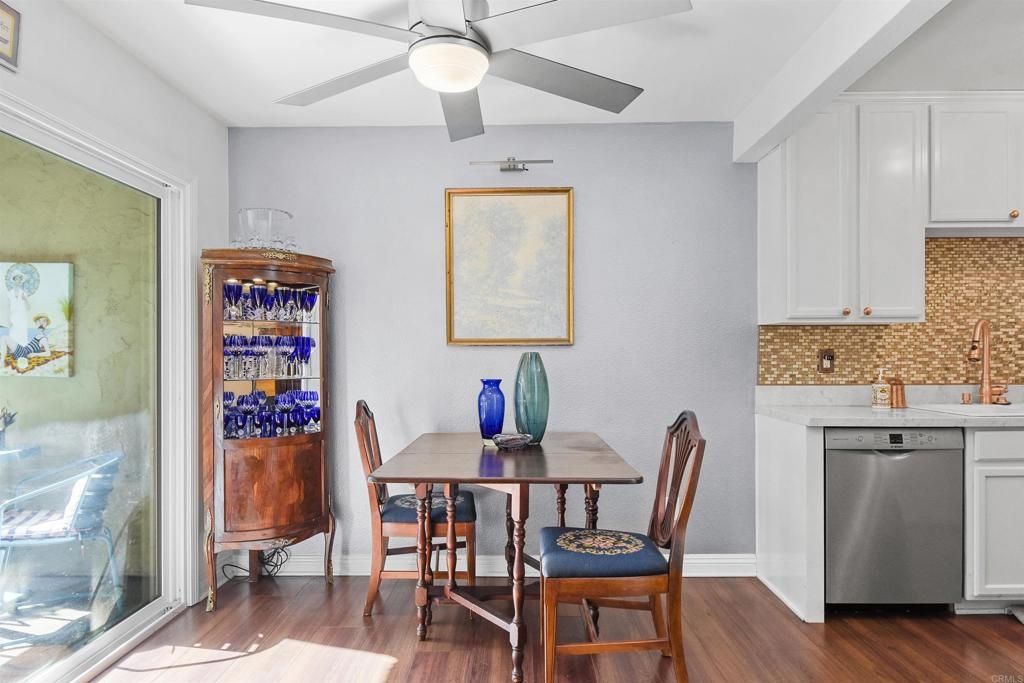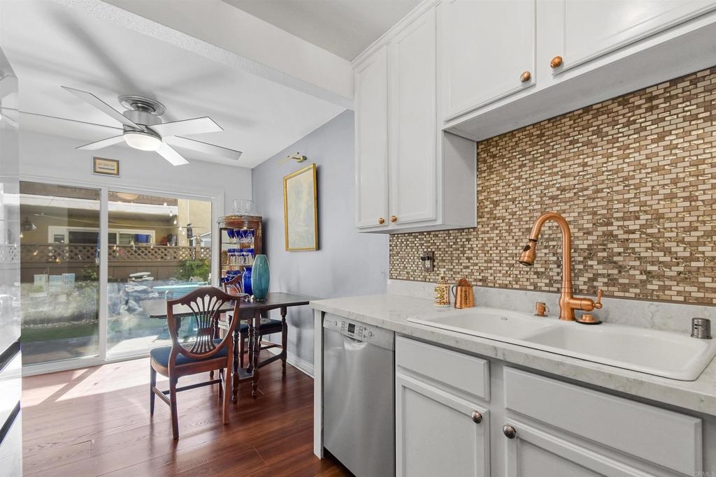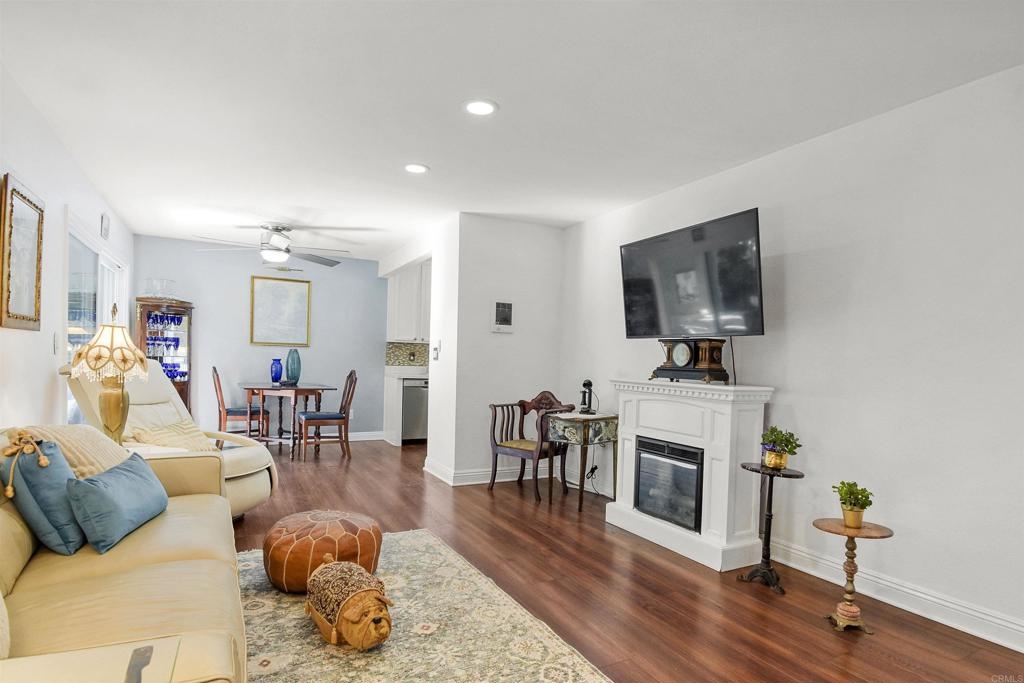 Welcome to the oasis that is Adela in Normal Heights. This ground floor, single level unit features a full sized Maytag laundry machine in-unit, off street parking, and conveniently sits a short distance from the mailboxes and Amazon lockbox. As you enter the front door you are immediately greeted by a beautiful light fixture which illuminates the marble tile in the entry. The window and lighting in the living room create an open and inviting area to relax. In the kitchen you’ll experience beautiful Italian tile countertops, a spacious walk in pantry, Bosch Silence Plus dishwasher, and Samsung Bespoke refrigerator. You’ll get to decide whether you want to dine outside on the patio, or in the comfort of dining area looking onto the patio. The HUGE fans in the kitchen and Primary bedroom create an amazing breeze that brings a comfortable feel even on a warm day. In the Primary Bedroom you’ll experience views of the greenery into the community, and you’ll enjoy the updated en-suite bathroom. The secondary bedroom is located conveniently across the hall from the secondary bathroom.