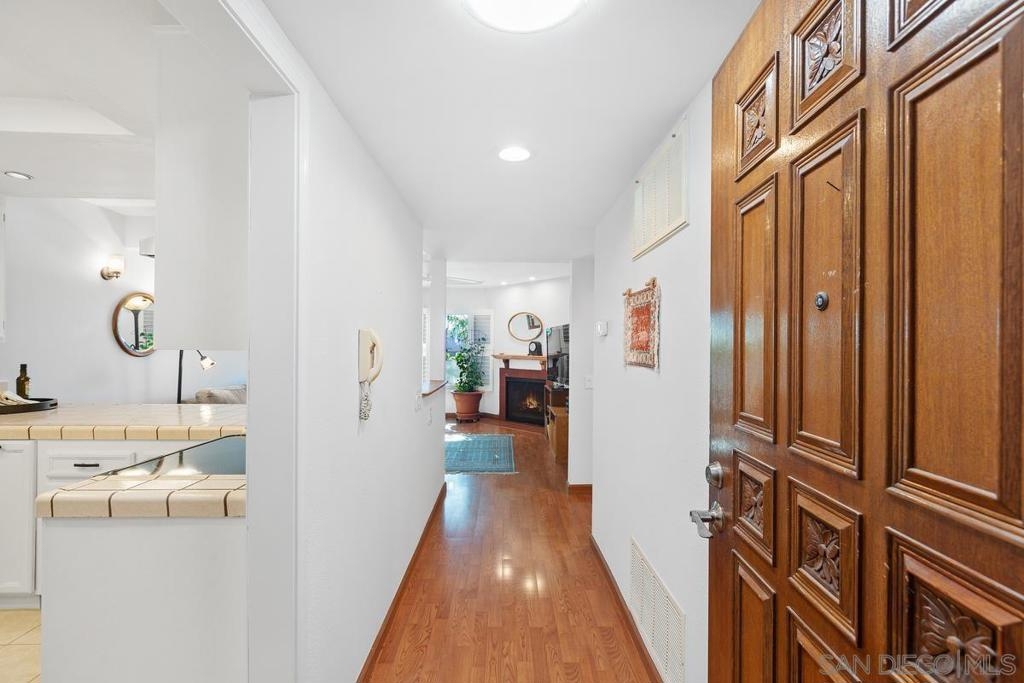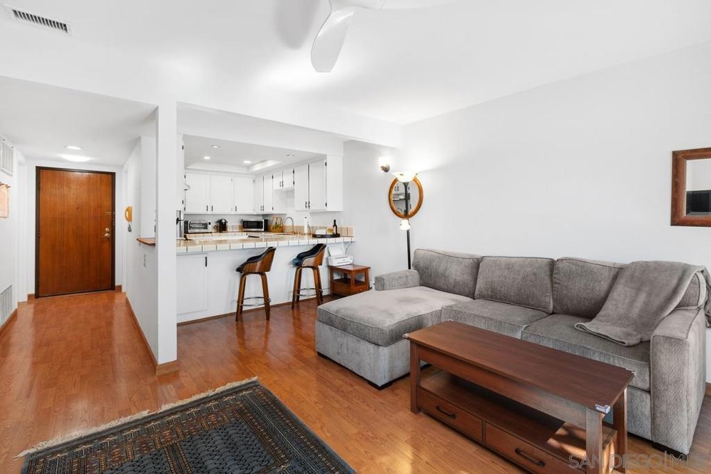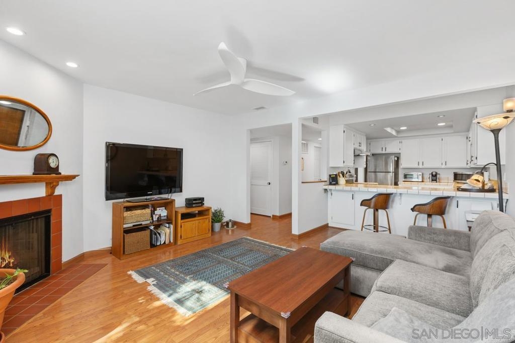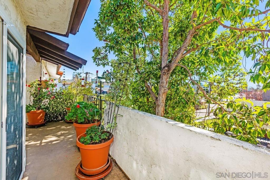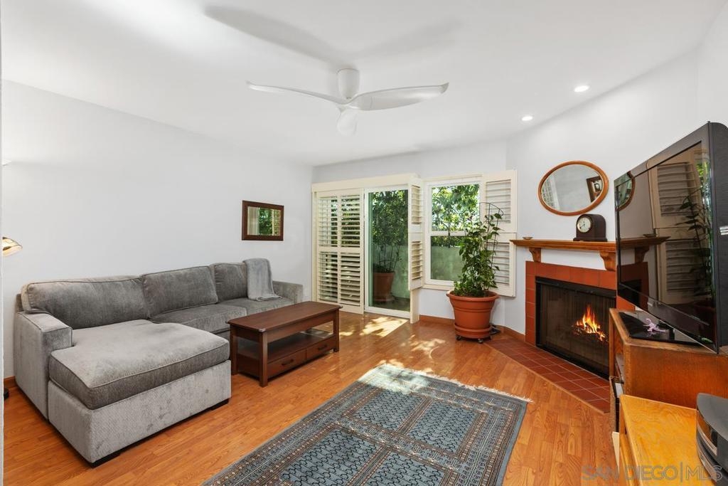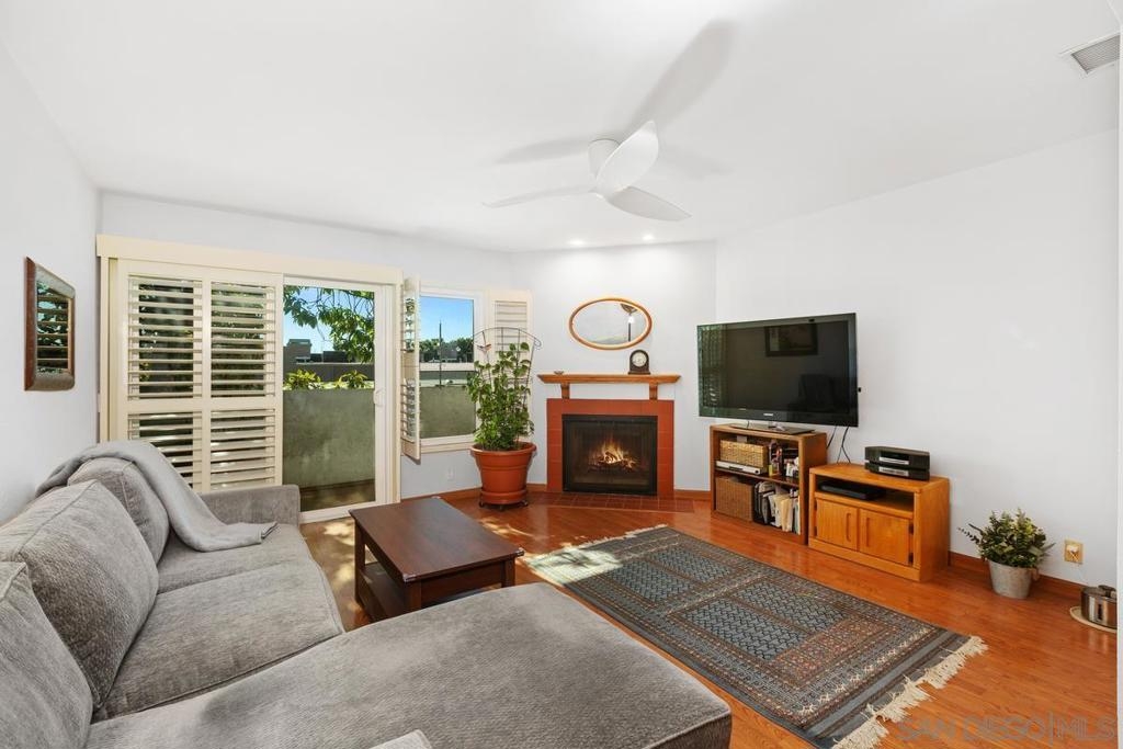 Exceptionally spacious 1 br/1.5ba top floor condo with Southern exposure and a very large outdoor balcony with chair swing that conveys! Beautifully appointed inside, entry coat closet, wood burning fireplace, stainless appliances in the kitchen, full sized W/D with walk-in laundry room plus storage, large MBR suite and beautifully redone MBA with walk-n shower. Solatube in the hallway which brings in lots of light. Security screen allows a great breeze with the door open! Dual paned windows and sliding door to the balcony. Raised storage cabinet above the secured underground parking space too. Fabulous location near Trolley Barn Park, restaurants, coffee shops, and many other great places to eat and shop.