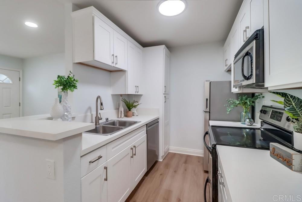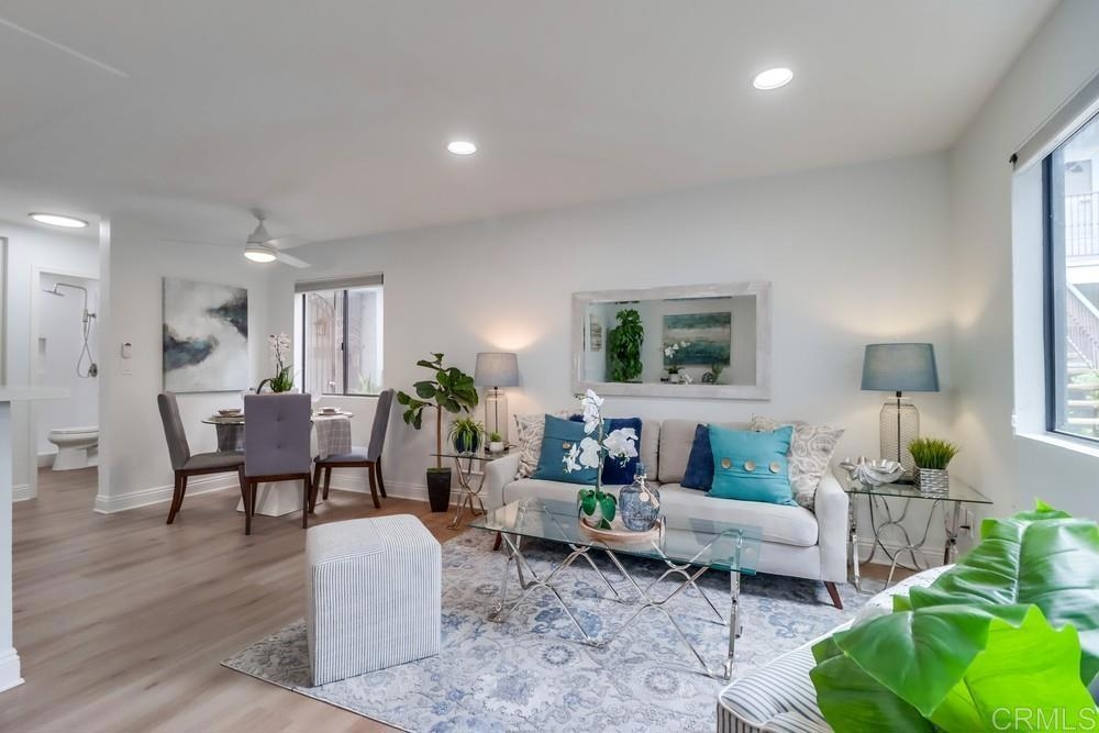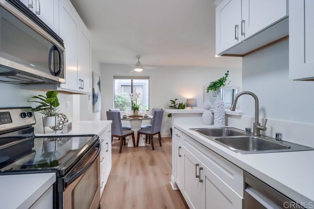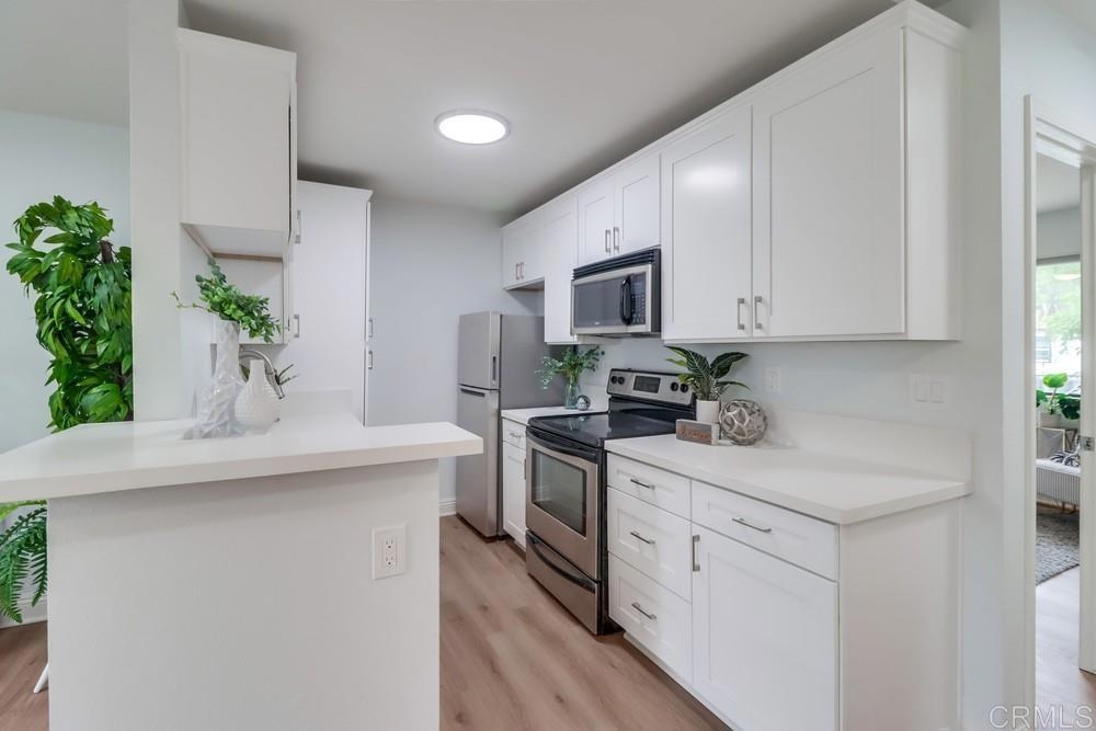 Fabulous lower-level condo in the heart of highly desirable Normal Heights. This beautiful one-bedroom home located in a quaint 16-unit gated community has been renovated from top to bottom including new kitchen cabinets, walk-in shower, and luxury waterproof and dent-resistant vinyl plank flooring throughout. Lovely open floor plan with recessed lighting and lots of natural light. Ceiling fans in dining area and bedroom. Conveniently located in Normal Heights just a few blocks from Adams Ave. Close to main freeways, shopping, restaurants, bars and more. Comes with one off-street parking space. VA approved complex.