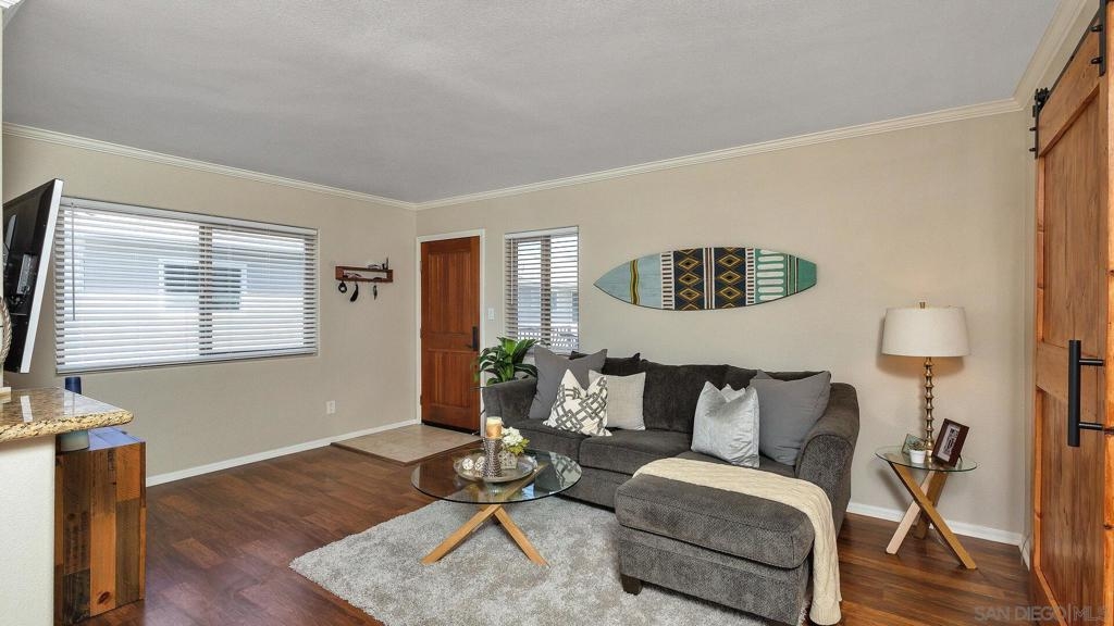 Beautifully updated 2 bedroom condo north of Adams in Normal Heights! Fully gated complex, 2nd story end-unit w/ 1 car garage W/D in-unit. Features include laminate & tile flooring, all new blinds, ceiling fans throughout, stainless steel appliances, granite countertops, recessed lighting, new kitchen & bathroom fixtures / hardware, ceiling fans throughout, large closets, bathroom skylight, custom barn door, new light fixtures & much more! A short stroll to eclectic Adams Ave to enjoy shopping, restaurants, bars & coffee shops. Equipment: Dryer, Range/Oven, Washer Sewer: Sewer Connected