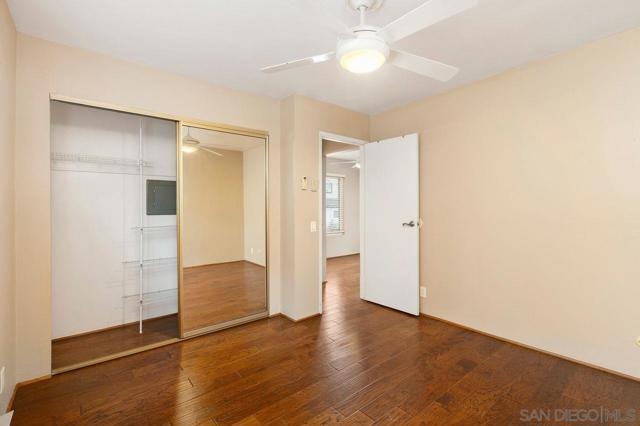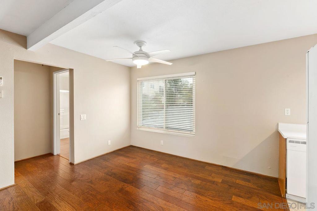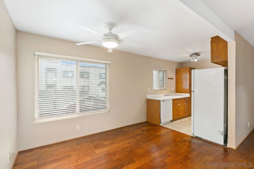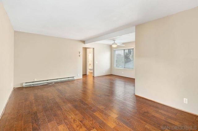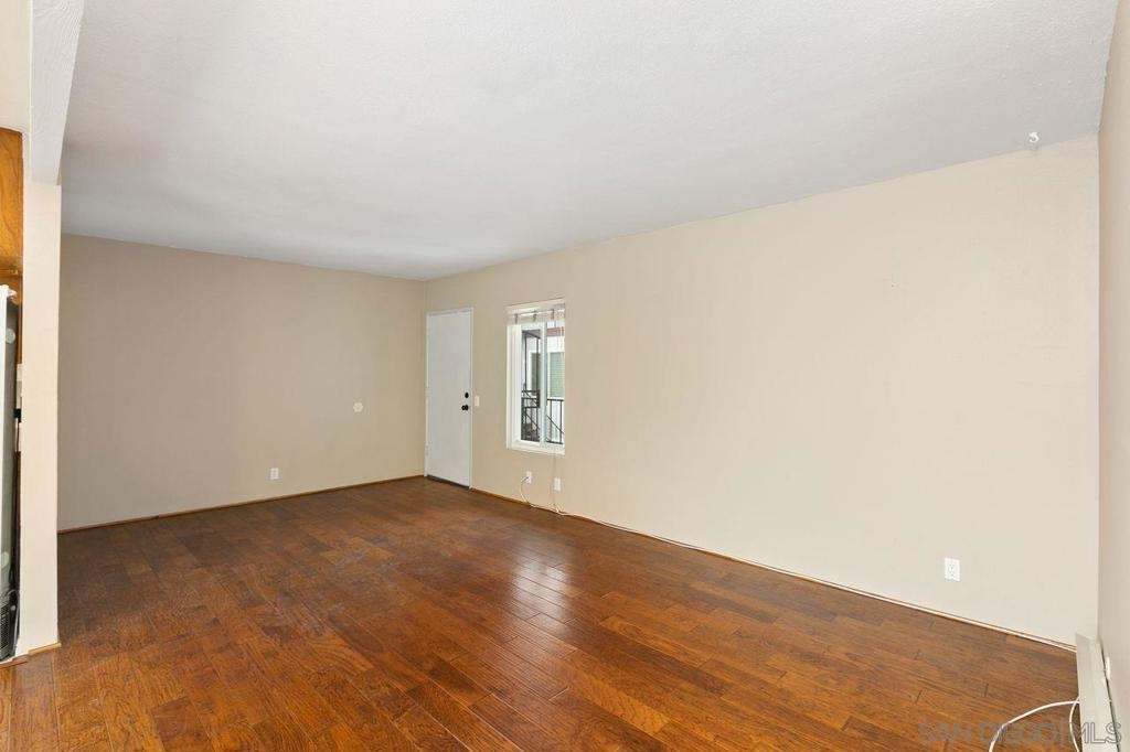 Large One Bedroom in University Heights with Garage! Located in a smaller well maintained complex. Set back from the street this light bright corner unit has wood floors and an upgraded bathroom with tile floor and newer vanity. Newer dual pane windows with Vertical Blinds, Ceiling fans in bedroom and dining area. Security gate and community laundry room. The complex is located on the east side of Texas Street, North of Madison and close to Mission Valley. This could be a great starter home or investment!