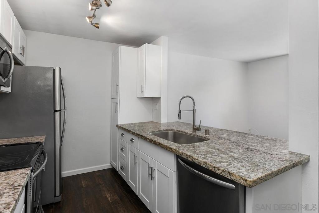 Situated in the heart of Normal Heights, this updated condo offers a perfect blend of design, convenience, and location. Location is everything, and this condo does not disappoint – walk to Adams Avenue for dining, shopping and entertainment! Located in a well-maintained gated complex, this 1 bedroom/1 bath upstairs unit features brand new paint, granite counters, stainless steel appliances, and a fireplace in the living room. There is also a separate dining area as well as a breakfast bar in the kitchen. The bedroom has direct access to the bathroom and features a walk-in closet. Additional features include a patio area right outside the front door, 1 assigned parking space, 2 community laundry rooms. A great opportunity to own in Normal Heights! Broker/Agent does not guarantee the accuracy of square footage, lot size, or other information concerning the condition or features of property provided by seller or obtained from public records or other sources and the buyer is advised to independently verify the accuracy of that information through personal inspections and with appropriate professionals.