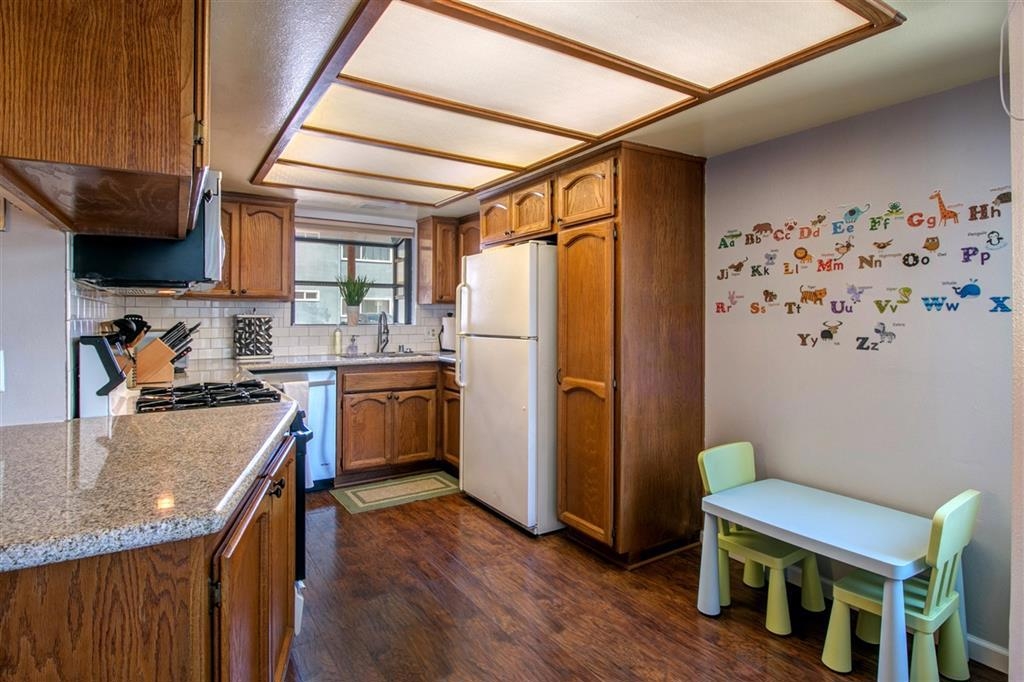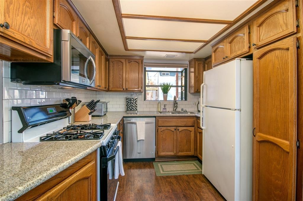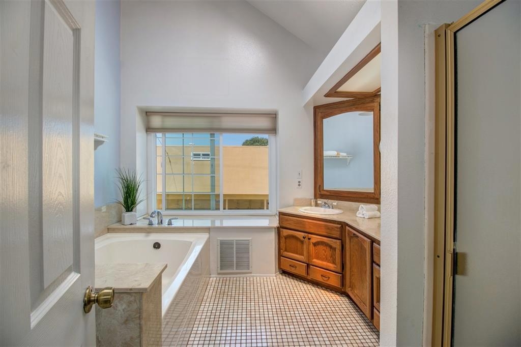 Rare find in Normal Heights! Updated Finberg, two story townhouse has gorgeous laminate flooring throughout. Spacious kitchen has new granite countertops, bay window to let the sun shine in! Extra-large living room has fireplace with adjacent half bath. Upstairs, master bedroom boasts skylight, vaulted ceilings and walk-in closet. Attached one-car garage with two additional assigned spaces. Private patio on first floor- great space to entertain. Master bath has oversized soaking tub, separate (see Supp) ...shower and double sinks. Second bedroom has walk-in closet and attached full bath. Convenient full-sized laundry upstairs in hall closet. BONUS room can be used for office, bedroom or storage. Walking distance to Adams Ave trendy restaurants, shops, schools, parks and culture! WELCOME HOME!!. Neighborhoods: Normal Heights Equipment: Dryer,Garage Door Opener, Range/Oven, Washer Other Fees: 0 Sewer: Sewer Connected Guest House Est. SQFT: 0