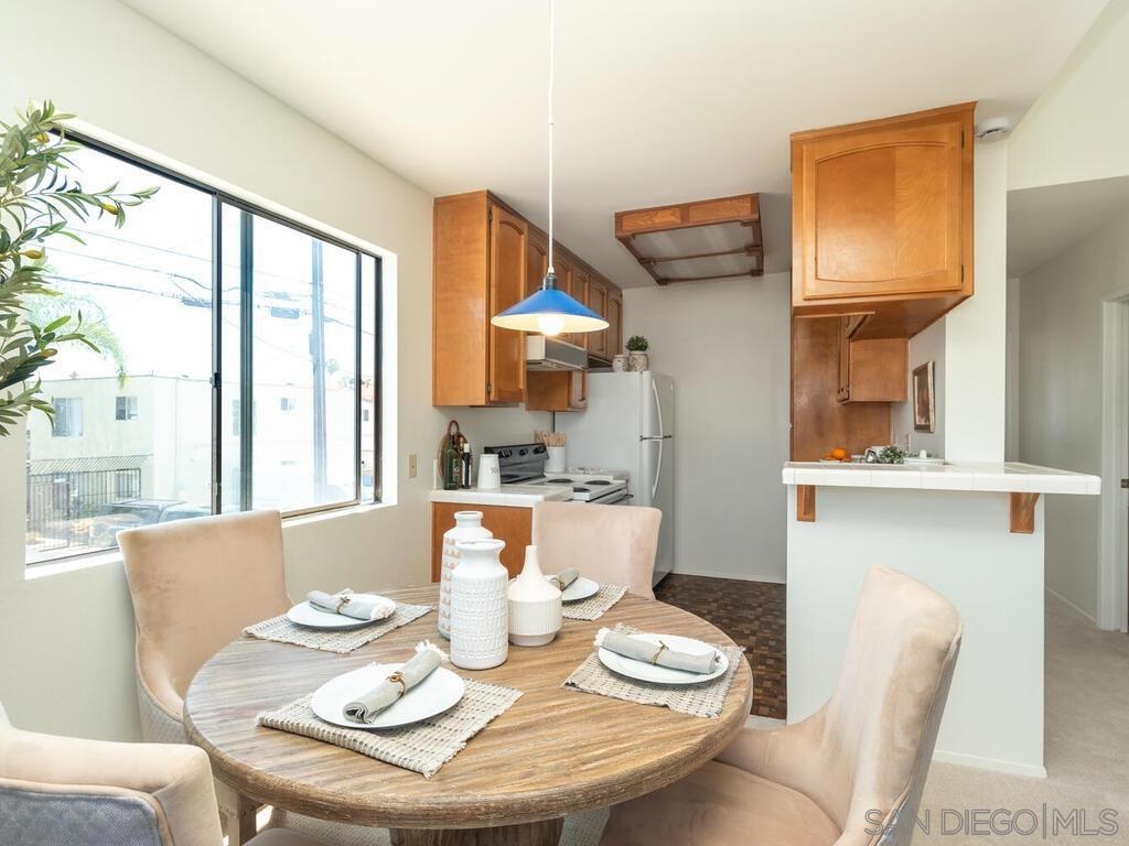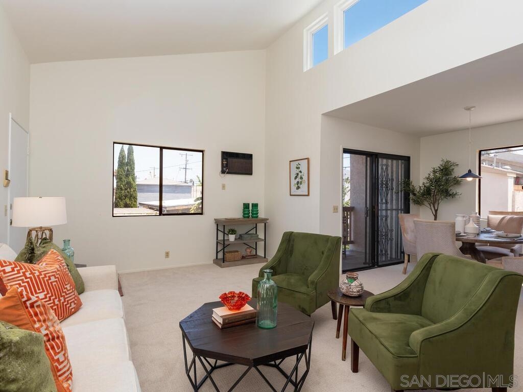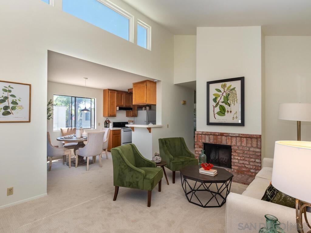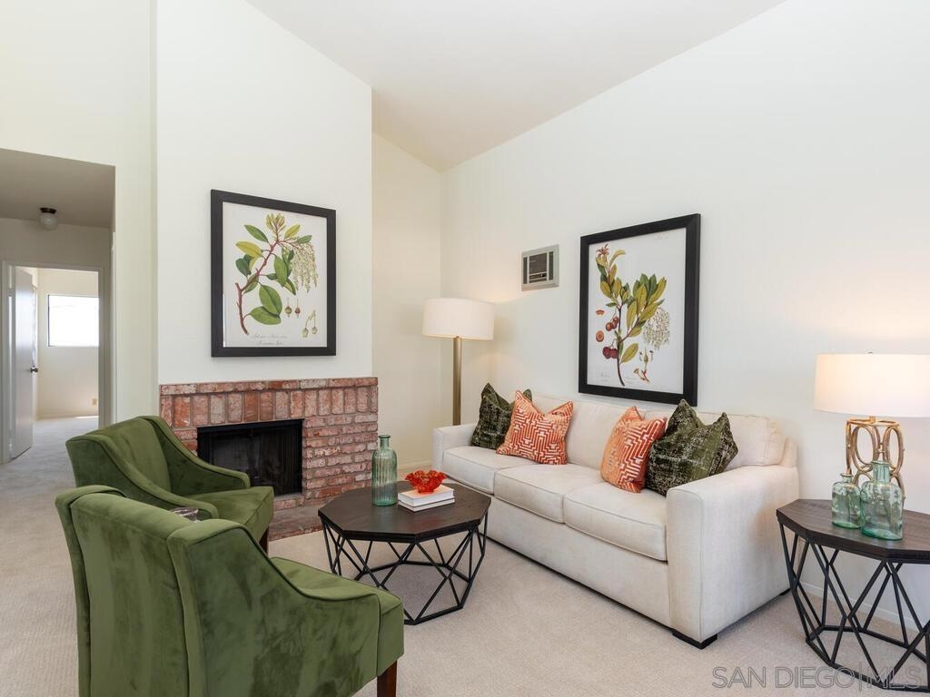 Discover your new home in the heart of sought-after Normal Heights! This refreshed, move-in-ready top-floor condo situated in the back for added privacy, features 2 bedrooms and 2 bathrooms, vaulted ceilings, clerestory windows, a cozy fireplace, and an open concept living area filled with natural light and an airy ambiance. Relax and enjoy your private & peaceful balcony or take a short stroll to the vibrant Adams Avenue, known for its diverse restaurants, rich culture, hip cafes, local pubs, fun art & so much more. With designer touches, including updated paint and carpeting, this end unit offers a perfect touch of modern and vintage living in a charming, walkable neighborhood. Welcome Home!