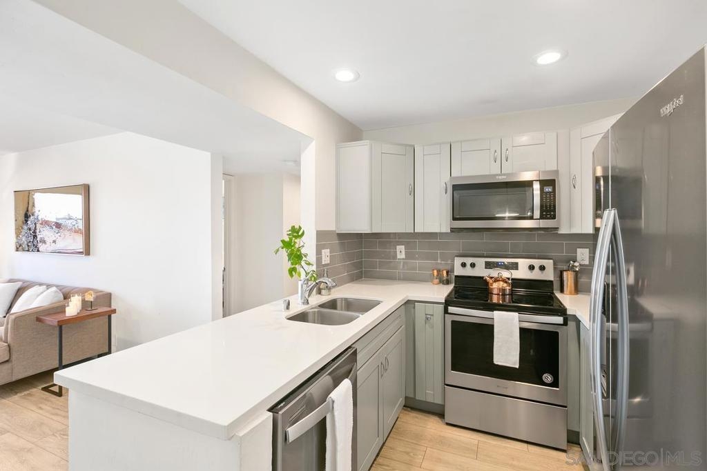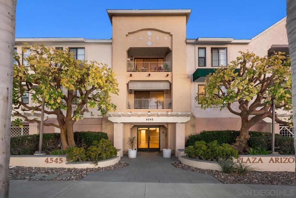 See Supplement. Welcome to this turnkey, single story condo with open floor plan in the gated, pet-friendly complex of Plaza Arizona in University Heights. Located on the top (3rd) floor, this tastefully updated two bed, two bath unit has had a full remodel (completed by the previous owner in 2019) as well as a 2021 remodel of both FULL bathrooms by the current owner. The spacious primary bedroom has two closets and an en-suite bathroom. The kitchen boasts soft-close cabinets, quartz countertops and Stainless Steel Built-In Appliances, plus water-resistant laminate flooring and recessed lighting with dimmers throughout the unit. Enjoy Central Heating and A/C (New AC/heat pump/air handler installed 2022, still under warranty), as well as an All-In-One Washer/Dryer in the unit! The All-In-One Washer/Dryer & all Built-In Appliances all convey with the sale of the unit. The unit comes with two (Tandem) secure, ground-floor parking spots in the parking garage, as well as a Visitor parking pass! Amenities include, a community bike storage room, an open air courtyard with community BBQ, two 3rd floor Rental Guest Suites available to rent out for family and friends, a gated entry and community laundry room (which you won’t need because of the all-in-one W/D in the unit!). Centrally located close to Mission Valley & Fashion Valley, with easy access to I-8 freeway. Walking/Biking distance to dining and breweries, as well as close to shops, restaurants, Antique Row, Adams Avenue & Trolley Barn Park.