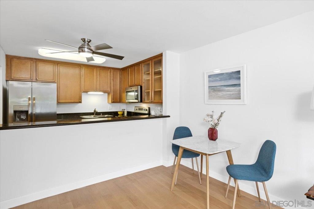 Discover this light-filled, ground-floor 1-bedroom, 1-bath condo in the coveted Suncrest Villas Complex, ideally perched at the top of 30th Street. West-facing and freshly updated, this 636 sq. ft. home features fresh paint, wood flooring, granite countertops, stainless steel appliances, and an updated bath. Step through sliding glass doors to your private patio, perfect for morning coffee or an evening glass of wine while soaking in the sunset glow. The spacious bedroom offers generous closet space, while the open concept living area creates an inviting atmosphere for relaxing or entertaining. Enjoy resort-style amenities: sparkling pool, sauna, BBQ and picnic areas, fitness center, clubhouse, and on-site laundry. HOA fees include water, trash and sewer, as well as building maintenance and landscaping. Live steps from the vibrant energy of University Heights and North Park, home to San Diego’s best cafes, bars, and restaurants, with quick freeway access for easy commuting. Whether you’re a first-time buyer, downsizer, or investor, this home delivers the perfect blend of style, convenience, and location.