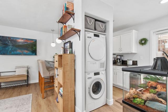Want to live 2 blocks from Adams Avenue in the charming neighborhood of Normal Heights - here is your chance! This condo is one of a kind for the price point with private indoor laundry, 2 deeded parking spaces, central AC and a huge private patio with private entrance. Inside has been remodeled with all new vinyl plank flooring, white cabinets and granite countertops. The kitchen is a chef's dream with full size, top of the line stainless steel appliances -including a 4 burner gas range with griddle. The inviting living space extends to a private patio, ideal for relaxing or entertaining guests. Park right outside your unit and enter through your very own private entrance. EV charging outlet in the two parking spots. The location is unbeatable in this trendy neighborhood, with easy freeway access making commutes a breeze, and it's just a short distance from local parks and popular restaurants. Perfect starter home or investment property in this high demand area.