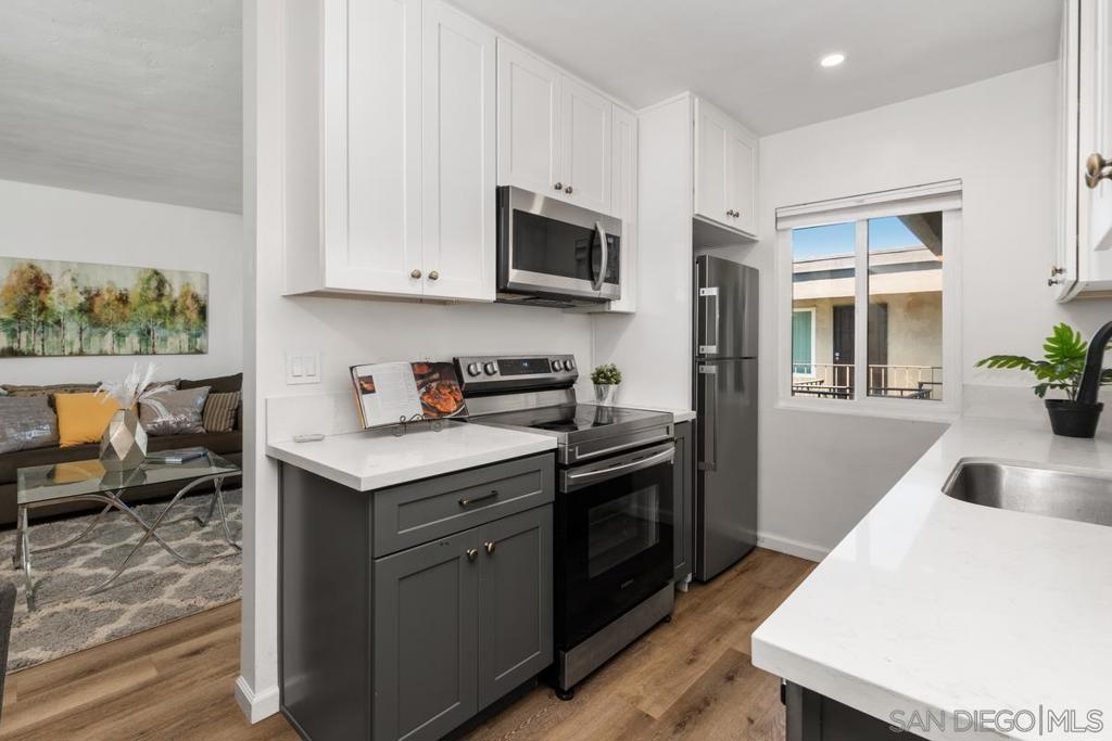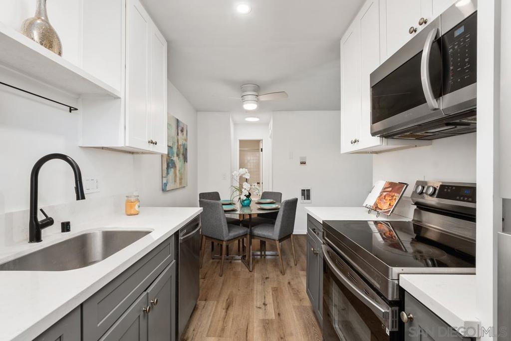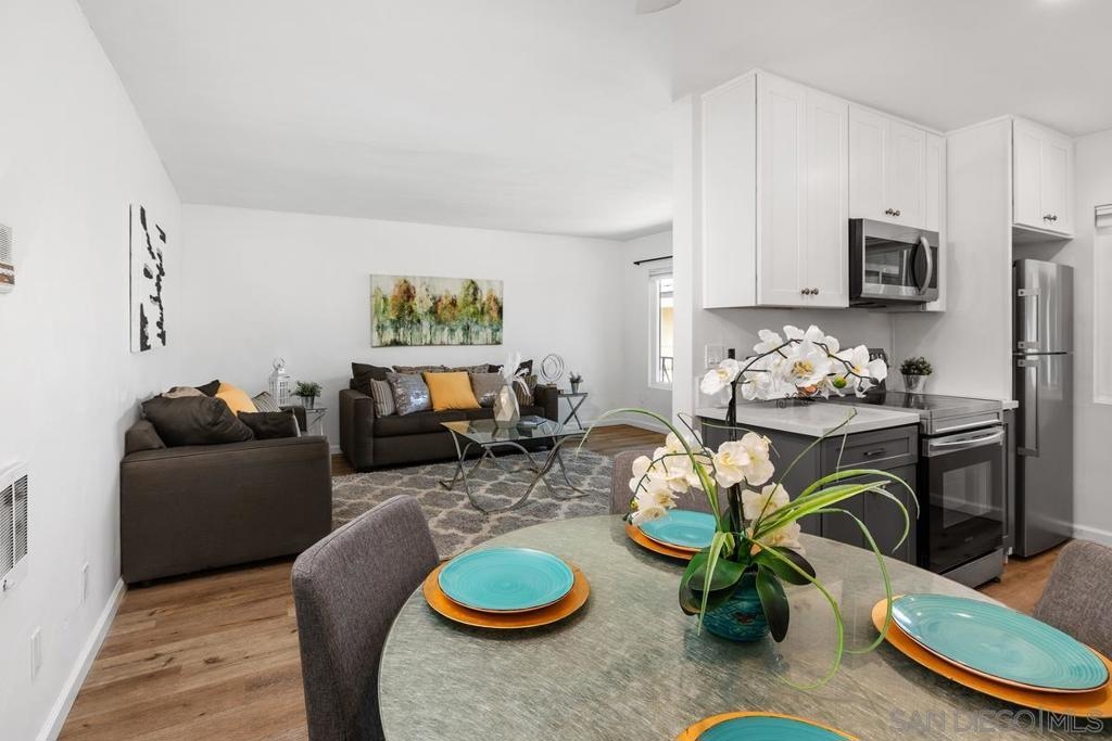 This beautifully upgraded 1Bd/1Ba, 580SqFt top floor condo in a quiet, gated community right on the border between North Park and University Heights (North Park ZIP code, University heights feel), is TURN-KEY/MOVE-IN READY! Perfect for first time home buyers and investors alike! The unit has been fully upgraded with dual pane vinyl windows, cellular shades, LVP plank flooring, cabinetry, plumbing fixtures, shower surround, LED recessed light fixtures, new stainless steel appliances and more! The property gets a ton of natural light and has a lovely cross breeze. Comes with 1 assigned, detached parking space and laundry can be found in the community laundry room. 4503 Hamilton St is centrally located in a quiet and safe neighborhood in San Diego. Very close to the 805, 163 & 8 freeways for easy access to all of San Diego County and a short walk or bike to both Hillcrest and North Park restaurants/bars/shopping, scenes. This property will not last long!