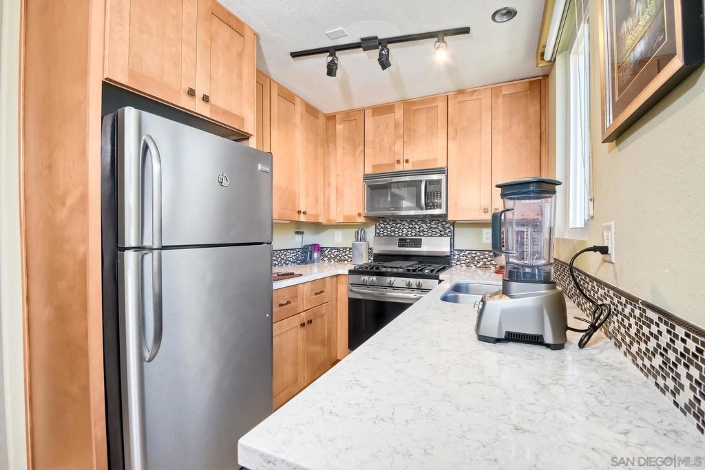 Location, location, location! Easy access to the 15 and 805, minutes from Adams Ave. and all the quaint charming shops and restaurants Kensington has to offer! This nicely updated/upgraded first floor 1 bed/1bath end unit is move in ready and only has one shared wall. The kitchen was remodeled less then 3 yrs. ago and features beautiful maple cabinets and quartz counters. Laundry in unit, bedroom has a walk-in closet. Well maintained small 7 unit complex. Condo comes with one assigned parking space located on the alley by the gate. Equipment: Dryer, Range/Oven, Washer Sewer: Sewer Connected Topography: LL