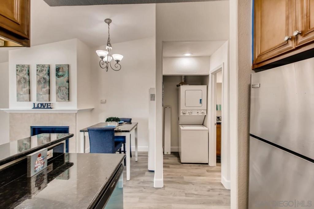 Freshly painted, move in ready! This cute, top floor 1 bedroom 1 bath has vaulted , volume ceilings in the living room and hallway. Brand New Vinyl plank flooring through out. Dual paned windows draw east and southern light, with neighborhood views. Enjoy the cool, private balcony off of the bedroom, which also contains a roomy walk in closet. Oak Craft cabinetry in the kitchen with under cabinet lights, which shine on the granite countertops. New stainless refrigerator, dishwasher added to oven and microwave to outfit the kitchen. Bathroom has a good sized tile shower. Convenient laundry center in unit. Equipment: Dryer, Washer Sewer: Sewer Connected Topography: LL