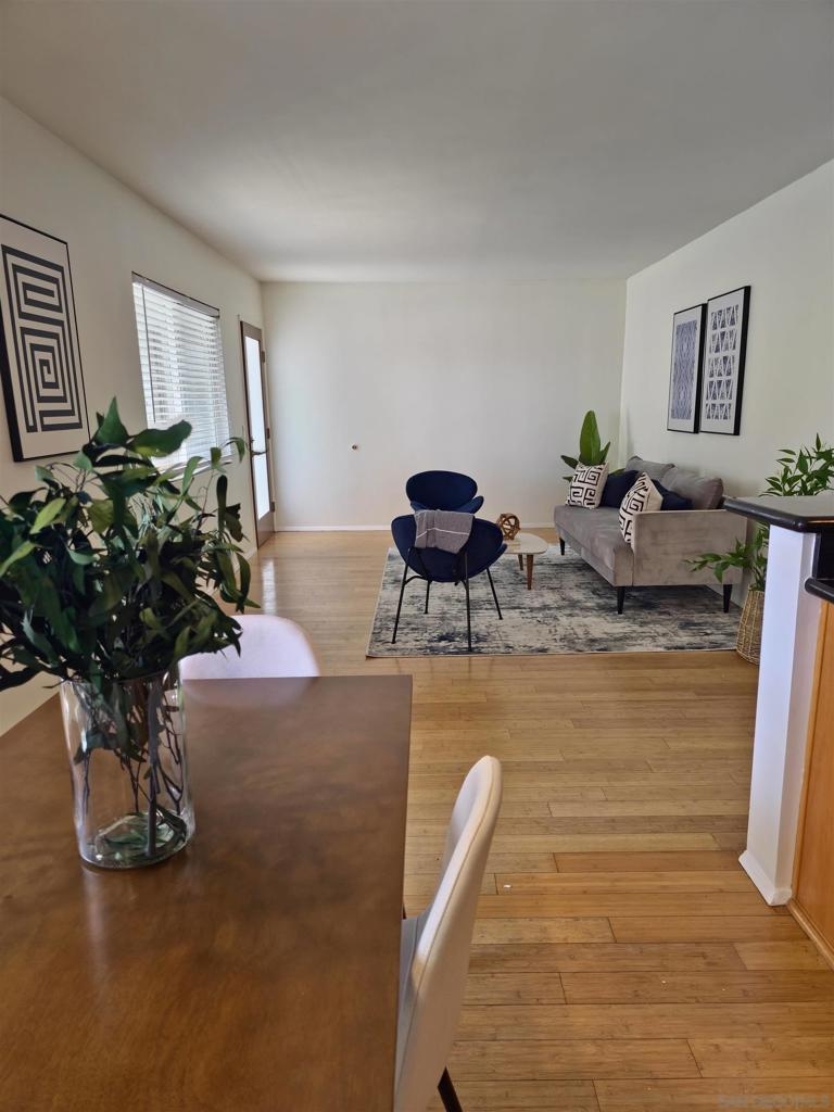 Contemporary and stylish University Heights 2nd floor, move-in ready condo near Adams Ave. Modern/upgraded upper unit with open floorplan. Full of light with an open view from the walk-out private balcony. Small, quiet, dog-friendly, gated complex with bike storage, and off-street, assigned parking. Condo features 2 bedrooms. Large master with walk-in closet. In-unit washer/dryer, bamboo hardwood flooring throughout, stainless appliances, granite countertops, raised glass basin vanity, Dining area sliding doors to private balcony. Walking/biking distance to Adams Ave. and all of the hottest eateries, coffee shops, and shopping. Popular part of San Diego. Quiet yet close to the action. Live the ultimate walkable San Diego lifestyle.