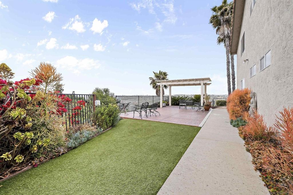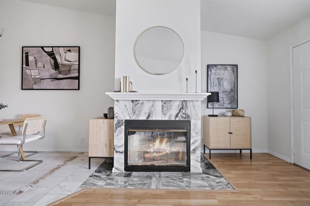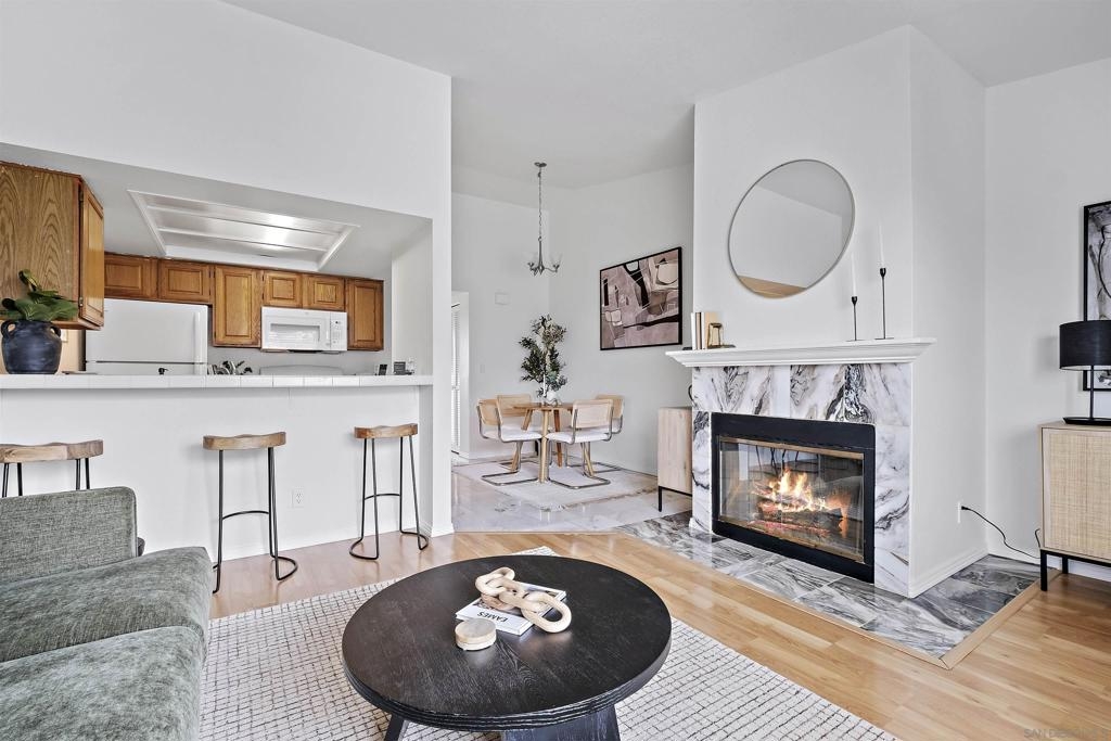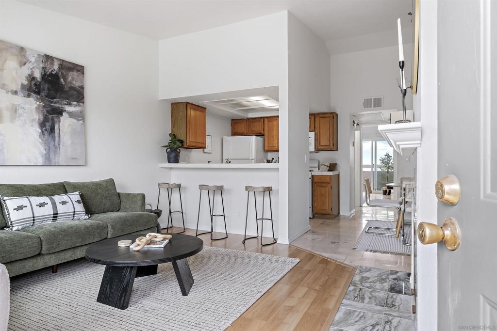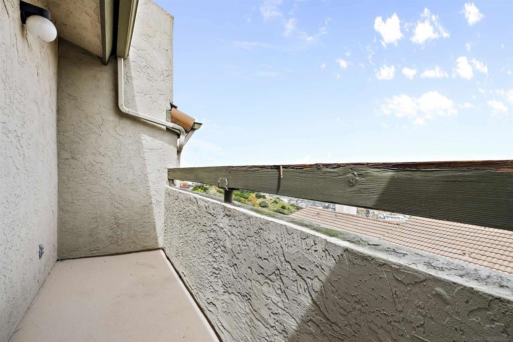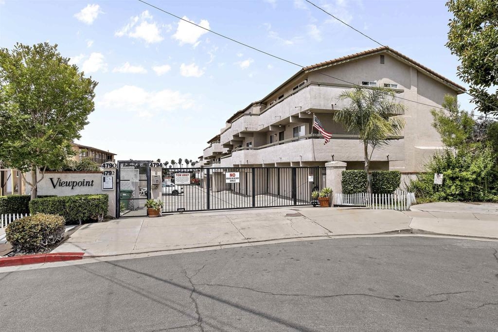 Discover an exceptional lifestyle in this meticulously updated, top-floor 1-bedroom condo with high ceilings in the highly sought-after Viewpoint development. This stylish unit features stunning views, elegant laminate wood floors, and a cozy fireplace, creating a perfect blend of comfort and sophistication. The complex is VA approved, ensuring peace of mind for eligible buyers. No expense was spared in recent renovations, and all appliances are included. Central air conditioning ensures you stay cool and comfortable year-round, while an in-unit washer and dryer provide the convenience of laundry at home. Elevator access allows you to effortlessly reach your top-floor unit. Enjoy wide vistas of Mission Valley and the surrounding hills from your view balcony. The gated complex features a secure entry screen and gated driveway, offering enhanced privacy and security. Nestled above Mission Valley and west of Normal Heights, this condo provides easy freeway access and is just minutes from Mission and Fashion Valley shopping centers, diverse restaurants, the Trolley Barn, and public transportation to SDSU. Live in a community that offers not only a beautiful home but also a vibrant, convenient lifestyle. Home comes with 1 assigned uncovered parking spot.