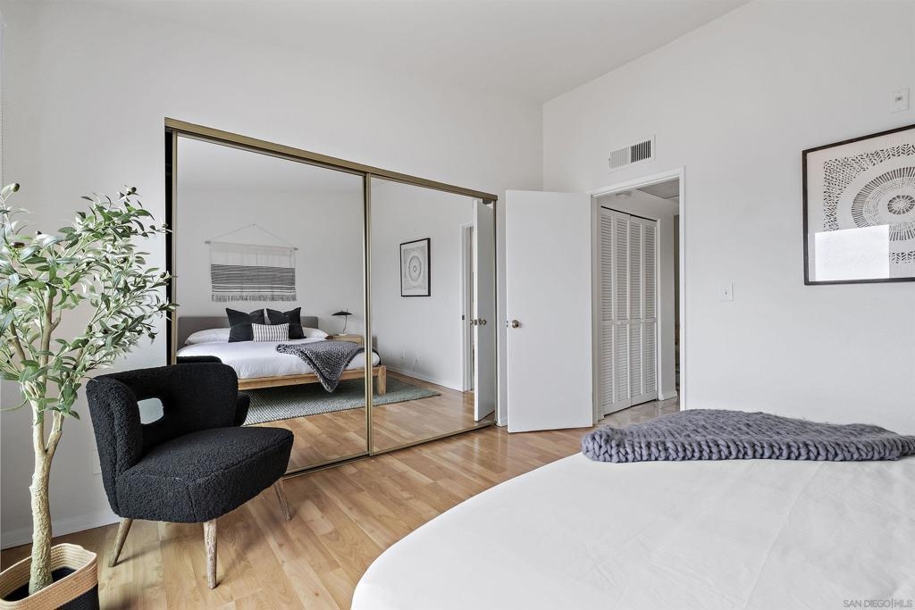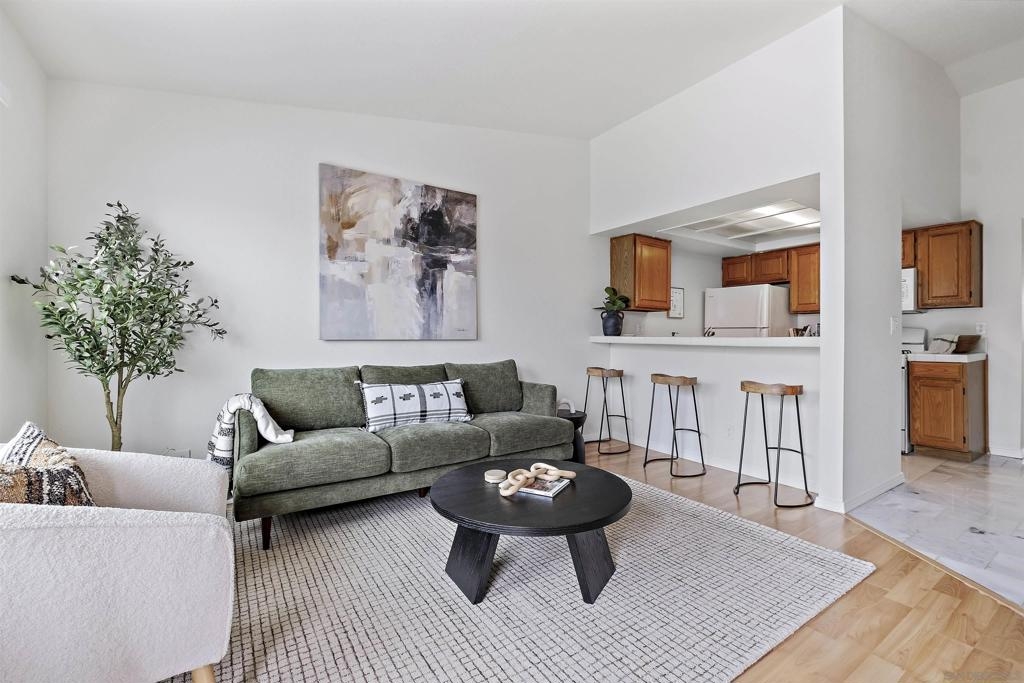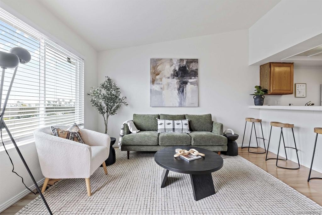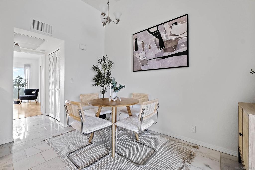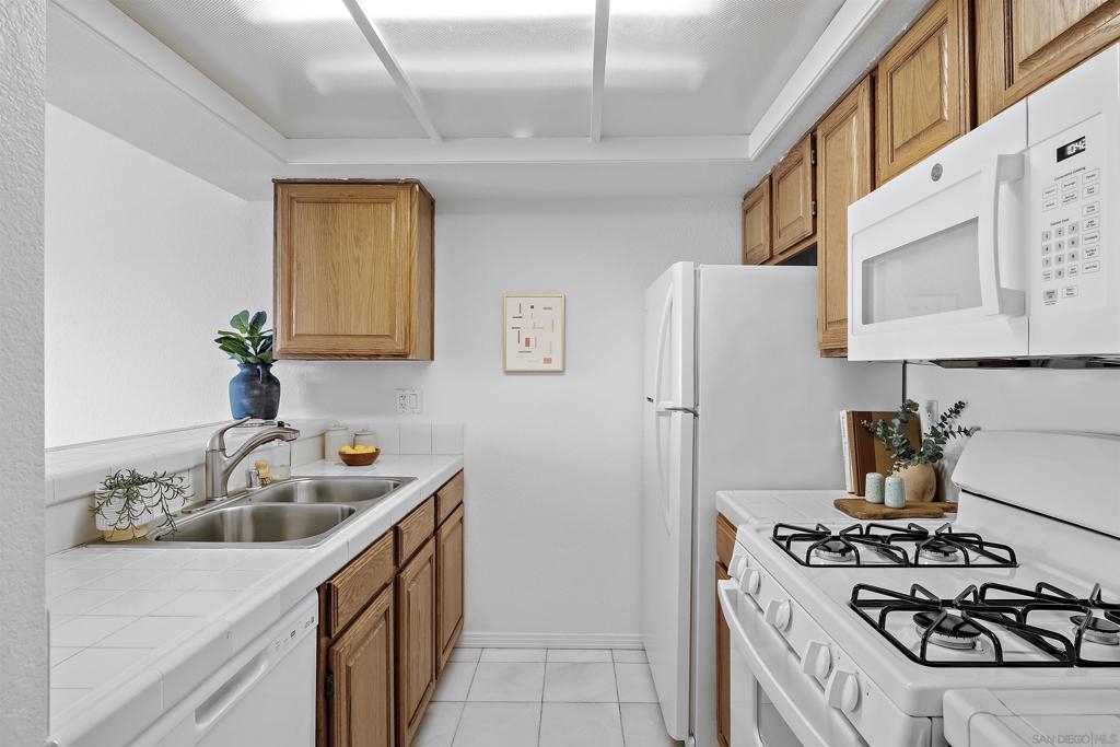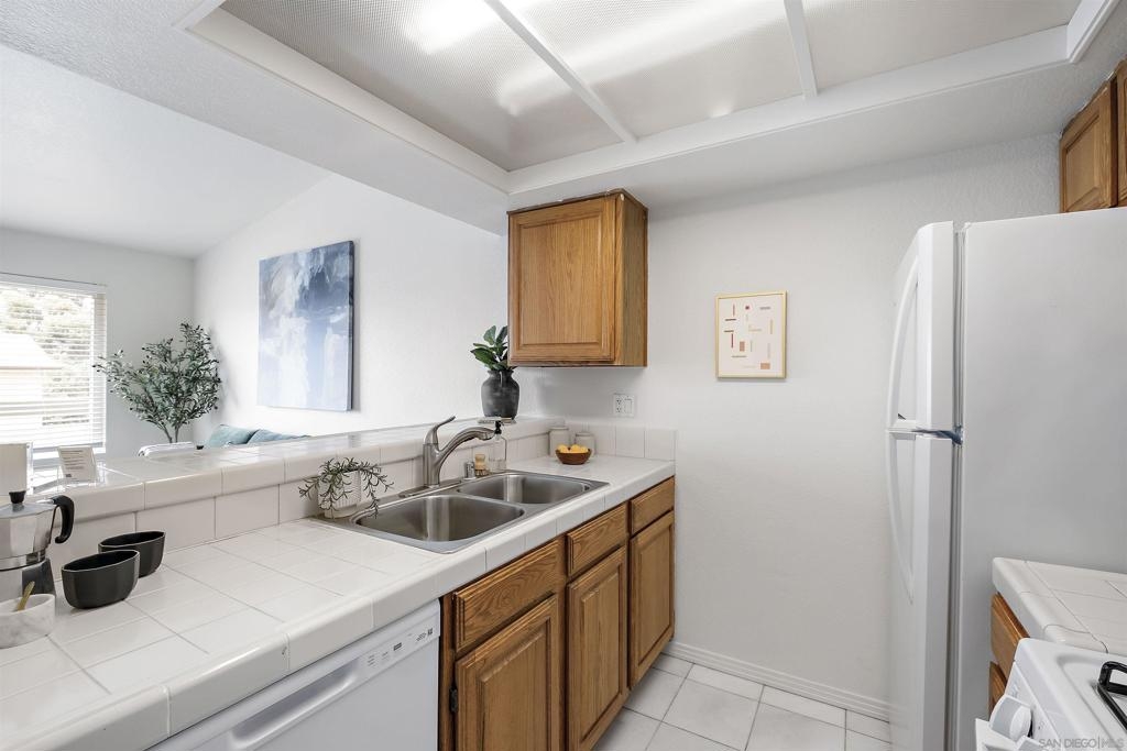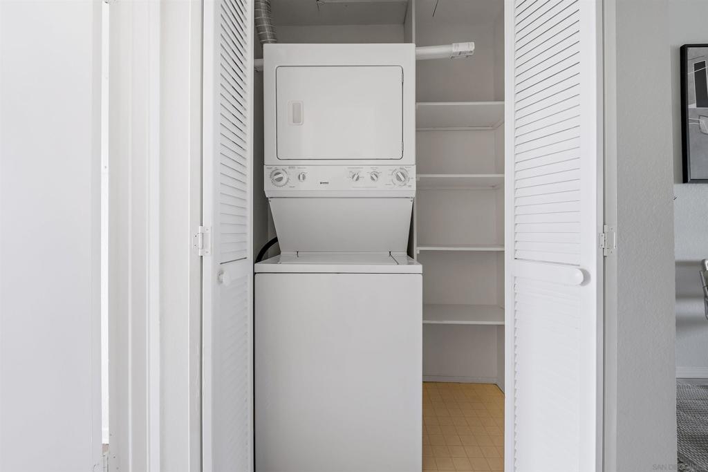 Discover an exceptional lifestyle in this meticulously updated, top-floor 1-bedroom condo with high ceilings in the highly sought-after Viewpoint development. This stylish unit features stunning views, elegant laminate wood floors, and a cozy fireplace, creating a perfect blend of comfort and sophistication. The complex is VA approved, ensuring peace of mind for eligible buyers. No expense was spared in recent renovations, and all appliances are included. Central air conditioning ensures you stay cool and comfortable year-round, while an in-unit washer and dryer provide the convenience of laundry at home. Elevator access allows you to effortlessly reach your top-floor unit. Enjoy wide vistas of Mission Valley and the surrounding hills from your view balcony. The gated complex features a secure entry screen and gated driveway, offering enhanced privacy and security. Nestled above Mission Valley and west of Normal Heights, this condo provides easy freeway access and is just minutes from Mission and Fashion Valley shopping centers, diverse restaurants, the Trolley Barn, and public transportation to SDSU. Live in a community that offers not only a beautiful home but also a vibrant, convenient lifestyle. Home comes with 1 assigned uncovered parking spot.
