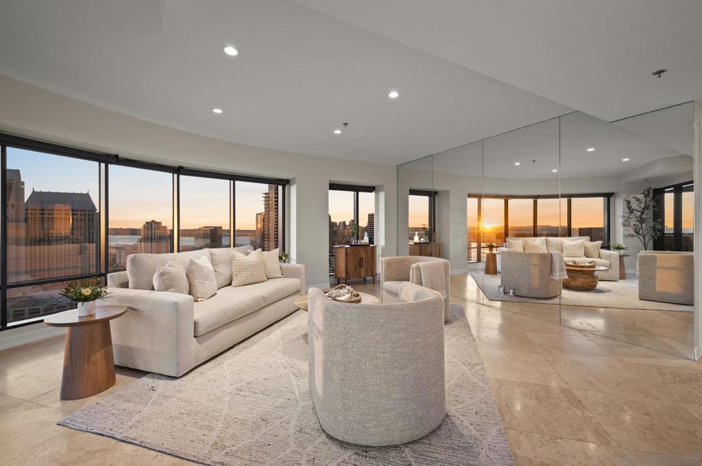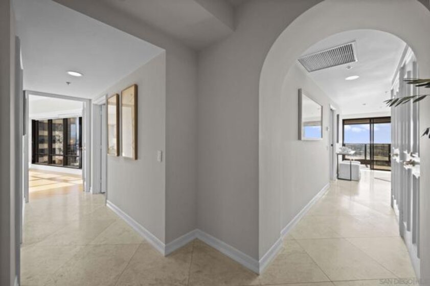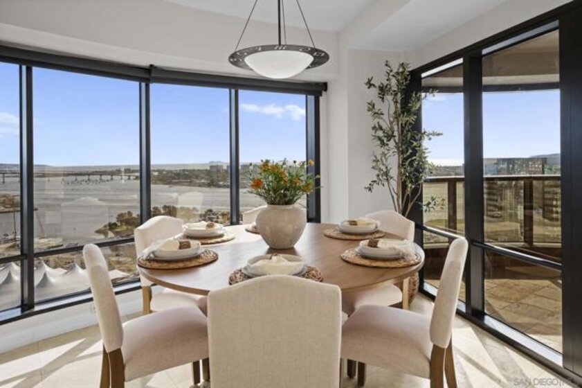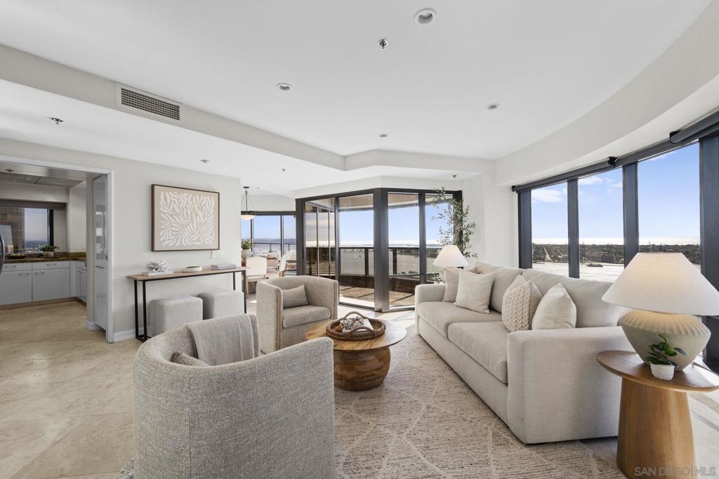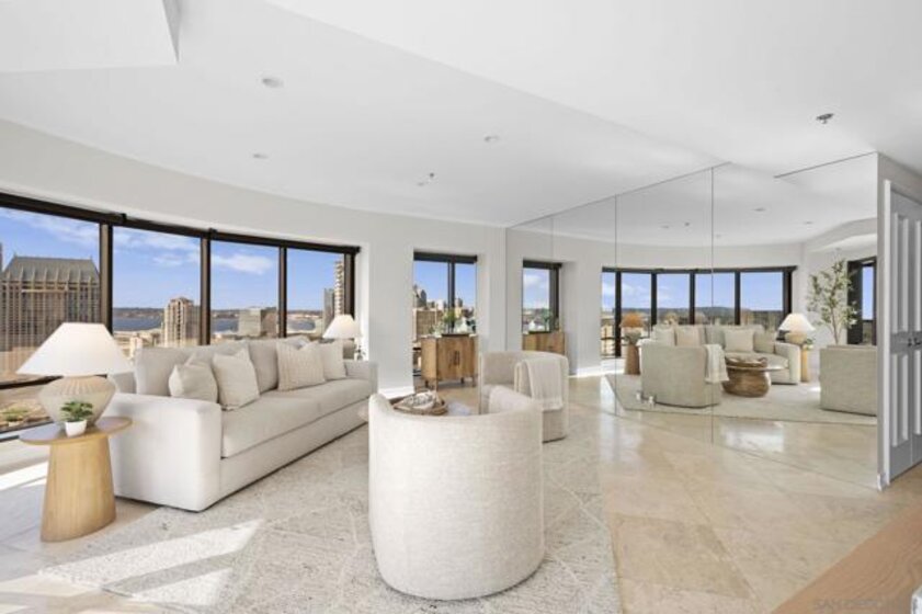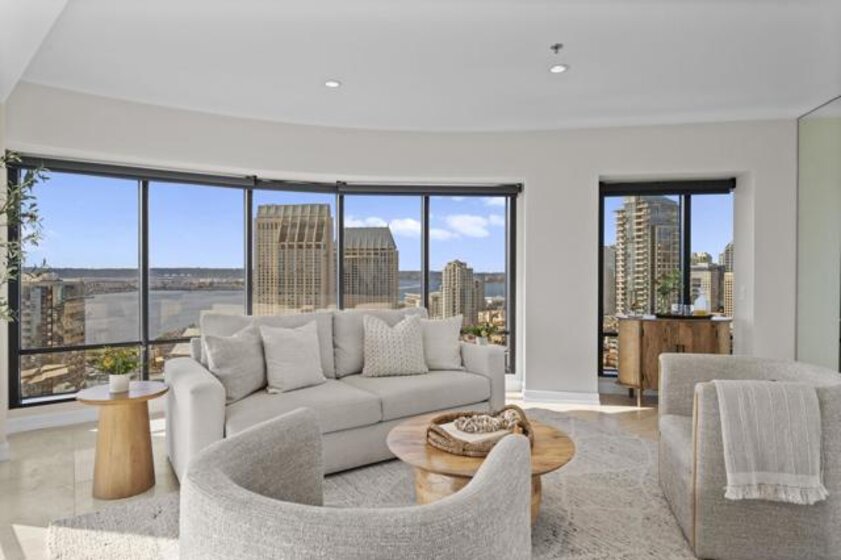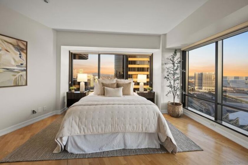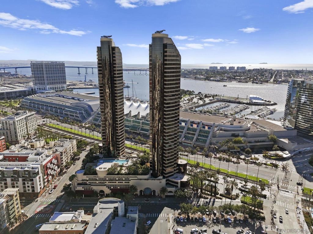 30th-floor bubble unit in the West Tower at the sought-after Harbor Club, featuring panoramic views of the Pacific Ocean, San Diego Bay, Downtown skyline, Coronado, and the Coronado Bridge. This 2-bedroom, 2-bath residence offers 1,474 sq ft of well-appointed living space and a west-facing balcony with steady ocean breezes and sunset views. Harbor Club residents enjoy a full range of amenities including a heated lap pool, fitness center, sauna, club room, outdoor BBQ areas, and 24-hour front desk service. Two secured parking spaces included. Highly walkable location near the Gaslamp Quarter, Convention Center, Seaport Village, shopping, Petco Park, and the Downtown Marina.