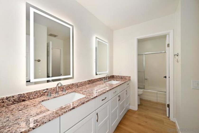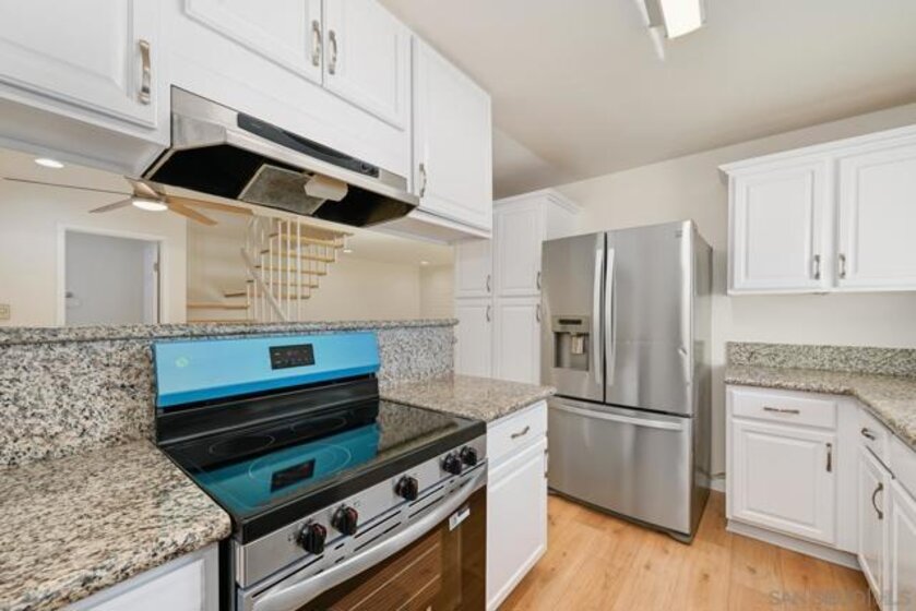 Stylish End-Unit Townhome in the Heart of Mira Mesa with $20K in upgrades! Tucked within the highly desirable Playmor community, this beautifully refreshed end-unit townhome offers a perfect balance of comfort and modern style. Step inside to find a bright, open interior featuring new luxury waterproof vinyl plank flooring, freshly painted walls, cabinetry, and doors, and new baseboards, fixtures, and finishes throughout. The kitchen showcases granite countertops and a brand-new oven and range, while both bathrooms have been thoughtfully updated with LED mirrors, modern lighting, and a new shower door. Additional upgrades include new ceiling fans, closet doors, and bedroom doors, creating a crisp, contemporary feel in every room. Enjoy the privacy of your own fenced patio, ideal for relaxing or entertaining, complete with the convenience of in-unit laundry. The well-maintained Playmor community features lush greenbelts and mature trees, offering a serene atmosphere just steps from your door. With two assigned parking spaces (one covered carport and one open space) and an unbeatable location close to top-rated schools, shopping, dining, and freeway access, this move-in ready home delivers easy living in one of Mira Mesa’s most sought-after neighborhoods. Modern comfort, unbeatable convenience, and peaceful surroundings—this one has it all!