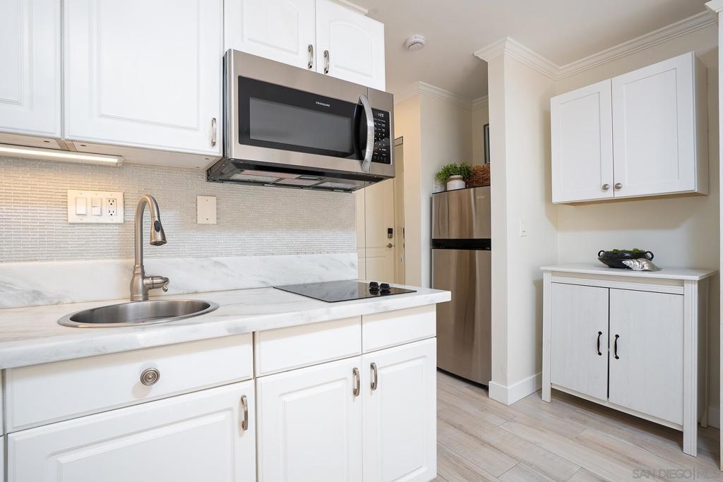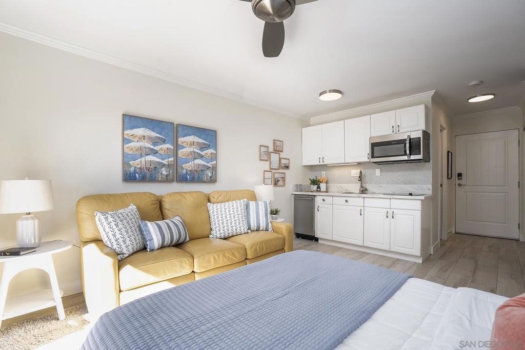 Welcome to 1021 Scott Street, Unit 137 — where compact luxury meets Point Loma’s most scenic setting. This bright, thoughtfully designed, 288 sq ft studio offers style, efficiency, and stunning views, perfect for full-time living, a weekend getaway, or an investment opportunity. Perched above the marina, the home features a sliding glass door leading to a private balcony with views of the Point Loma hills, the marina, and the community pool. A space-saving Murphy bed adds flexibility and extra storage, while the kitchen shines with stone countertops and ample white cabinetry. The well-appointed bathroom includes a full size tub with beautiful finishes. Just steps from the scenic Bessemer Path and La Playa Bayfront Beach, the community offers premium amenities such a pool, fitness center, billiards room, and residents’ lounge. Whether you’re sipping your morning coffee on the balcony or strolling the bay, this upgraded studio delivers big on lifestyle in a premier location.