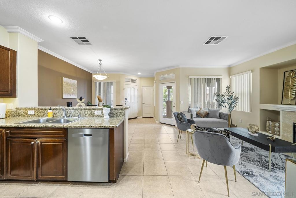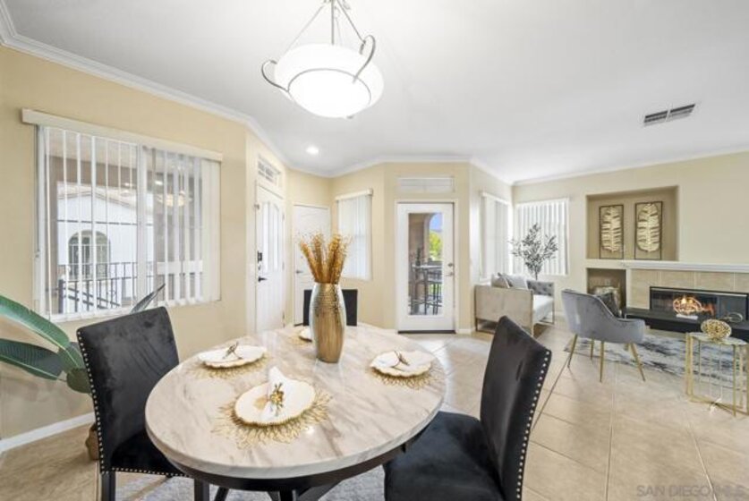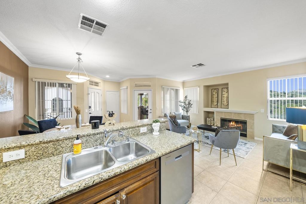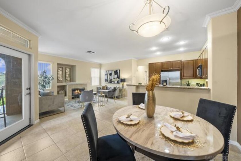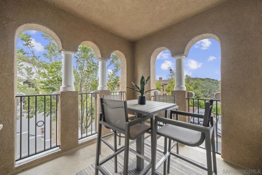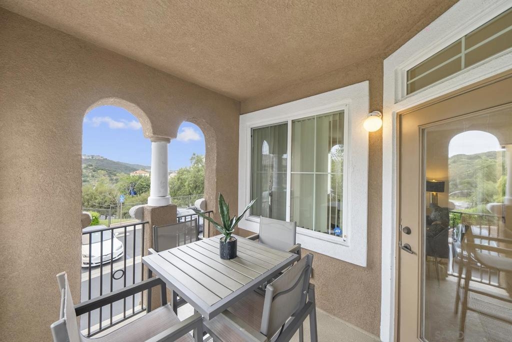 This elegant upstairs corner condo in the desirable Savannah Terraces community offers a host of luxurious features, including granite countertops, stainless steel appliances, an in-unit washer and dryer, and a one-car garage. The open concept floor plan allows the living room, dining area, and kitchen to flow seamlessly together, all while enjoying breathtaking mountain views from every room in the house. With arguably the best view in the complex, you can ensure privacy and tranquility while relaxing on your balcony, watching beautiful sunsets, or cozying up in the living room next to your gas fireplace. The community boasts a wealth of amenities, including a pool, tennis court, racquetball court, basketball court, gym, and steam room. This beautiful condo is conveniently located near major freeways and within the prestigious Poway Unified School District, with schools and community parks just a short walk away. Plus, Poway is renowned as the number one safest city to live in San Diego.