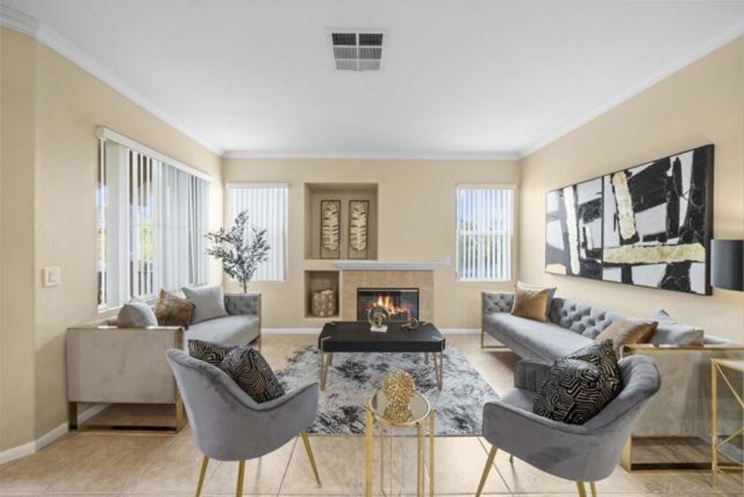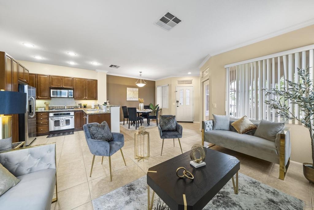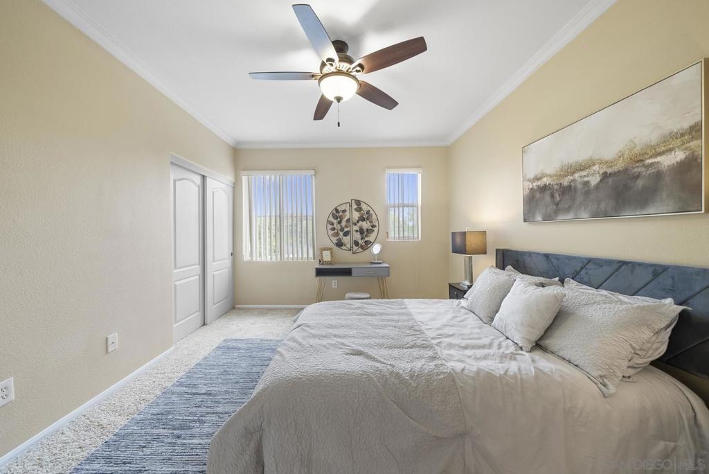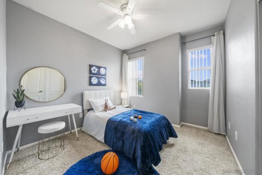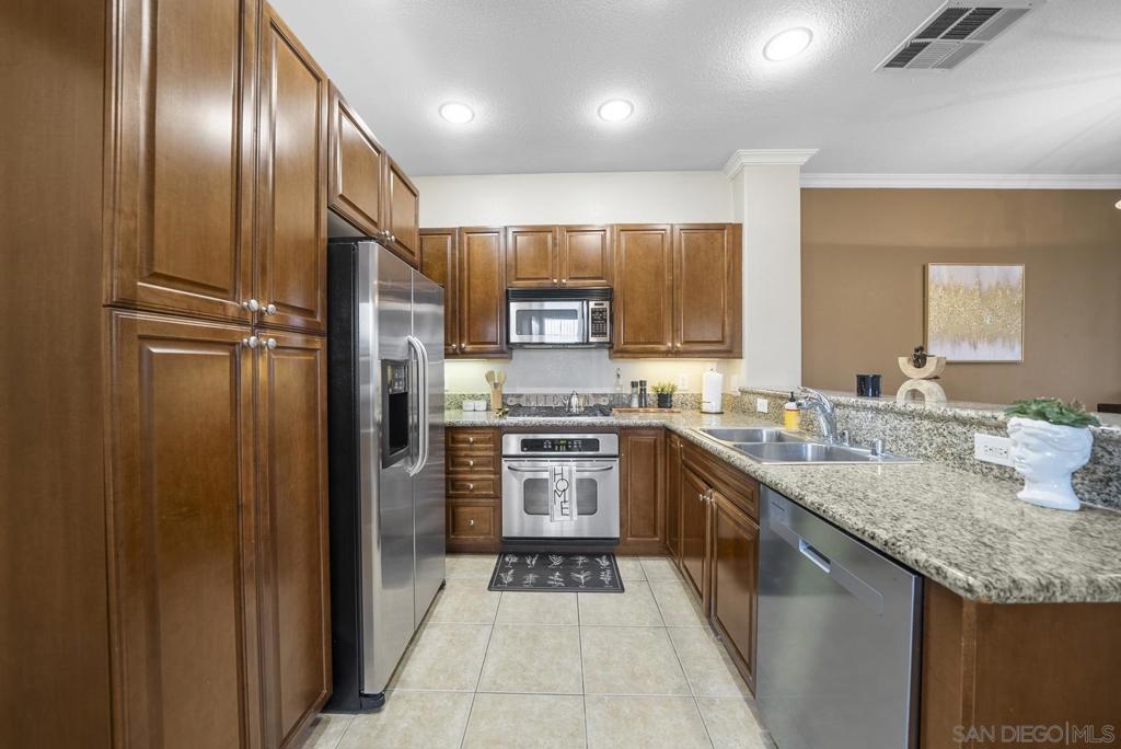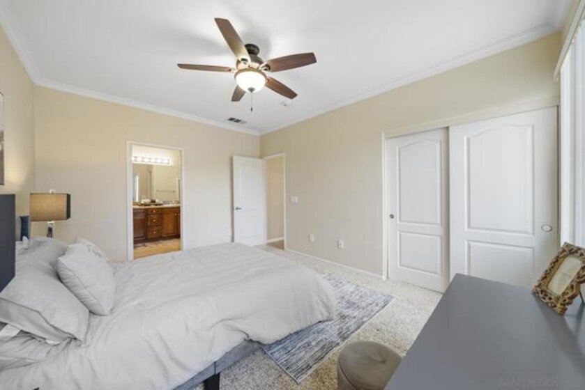 This elegant upstairs corner condo in the desirable Savannah Terraces community offers a host of luxurious features, including granite countertops, stainless steel appliances, an in-unit washer and dryer, and a one-car garage. The open concept floor plan allows the living room, dining area, and kitchen to flow seamlessly together, all while enjoying breathtaking mountain views from every room in the house. With arguably the best view in the complex, you can ensure privacy and tranquility while relaxing on your balcony, watching beautiful sunsets, or cozying up in the living room next to your gas fireplace. The community boasts a wealth of amenities, including a pool, tennis court, racquetball court, basketball court, gym, and steam room. This beautiful condo is conveniently located near major freeways and within the prestigious Poway Unified School District, with schools and community parks just a short walk away. Plus, Poway is renowned as the number one safest city to live in San Diego.