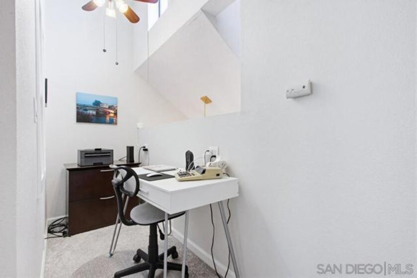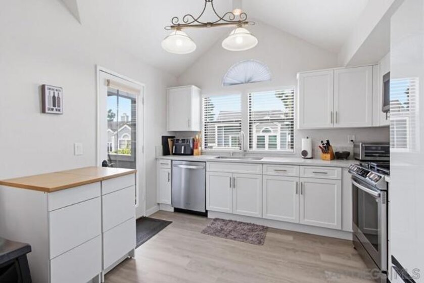 This stylish 2-bedroom, 2-bath townhome is located in the highly desirable Nob Hill community of Scripps Ranch. The home features a recently remodeled kitchen with slab countertops and stainless-steel appliances, beautiful wood flooring, and spacious, updated bathrooms. Soaring ceilings, designer window treatments, a cozy fireplace, and abundant natural light create a bright, welcoming atmosphere. A versatile loft provides the perfect space for a home office. Additional highlights include a newer heating and air conditioning system and ample storage throughout. Enjoy stunning west-facing views stretching to the coast from both the home and private patio, along with the convenience of an oversized two-car garage. This gated community offers exceptional amenities, including two pools, spas, and direct access to Lake Miramar. Ideally situated near top-rated schools, shopping, dining, parks, and entertainment, with easy access to all that San Diego has to offer. This is a home you won’t want to miss.