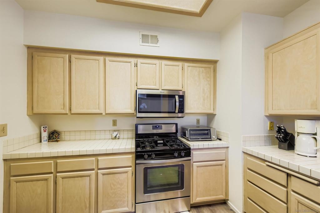 Single level ground level condo on a huge greenbelt with view nicely upgraded with new paint, new luxury vinyl flooring plus newer dual pane windows and slider. New stainless steel appliances including new stove, micro and dishwasher. New walk in shower in master suite with new light fixture. New air conditioning compressor. One car garage plus loft storage & one assigned carport. Bright & cheery unit in a private location within close proximity to the mission trails park. Complex offers pools, spas, volleyball court & playground. Park light setting with private patio overlooking the greenbelt area and the view of the hills and the mountains. Very desirable location.