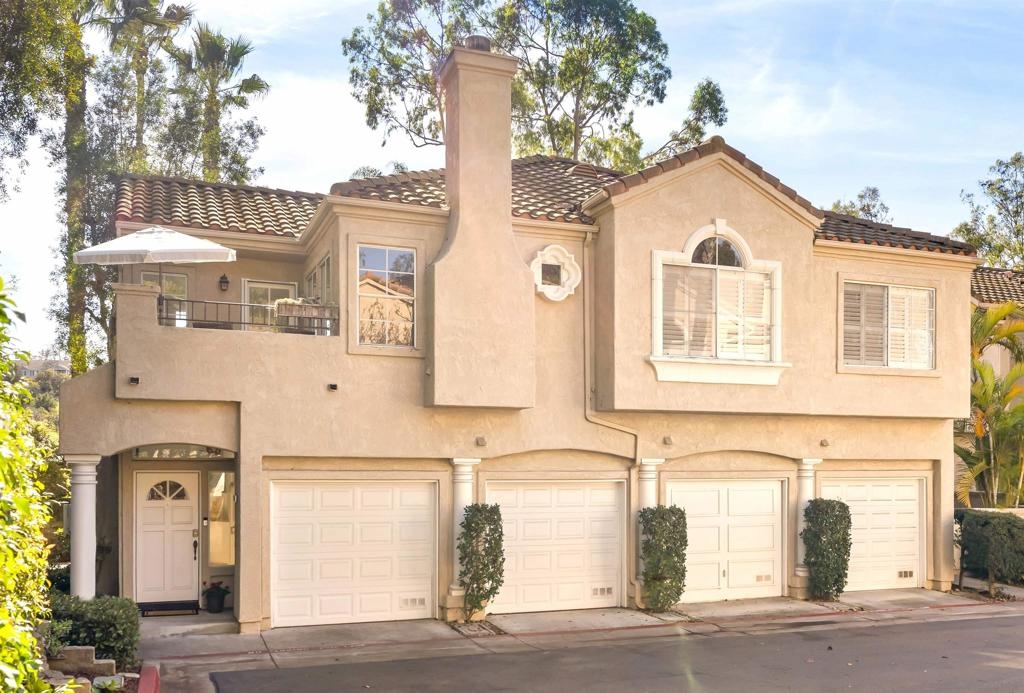Stunning Upper-Level, 2-Bedroom, 2-Bath Condominium with a Private Corner Location! Features include a bright open floor plan, vaulted ceilings, rich engineered-wood flooring, beautiful kitchen remodel with granite counters and premium stainless steel appliances, large outdoor patio balcony, spacious bedrooms with classic wood shutters, walk-in closet, central heat and air conditioning, one-car attached garage with full-size laundry plus additional covered carport. Enjoy the beautiful Belsera community with sparkling pools, spa, recreation area with volleyball sand court, adjoining Mission Trails Park with endless hiking and biking trails and more!