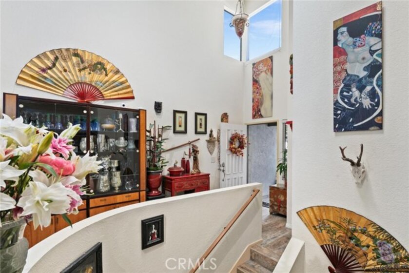 Perched atop the coveted hills of Tierrasanta — dubbed the “island in the sky”—this exceptional residence offers a lifestyle that feels both secluded and connected. With two spacious bedroom suites, a versatile office/guest bedroom, and 2.5 baths, this property is designed to please those who value comfort, tranquility and centrality. The tree-lined community has no through streets and is just one block from Mission Trails Regional Park, where you will enjoy unmatched access to nature while remaining minutes from shopping, dining, and major freeways. In perfect harmony with the community, this rare residence is the only home in the Sunset Ridge community that has a private garden space, which is large and wraps around the home, as well as a large upper deck revealing beautiful sunset and mountain views. Abundant natural light spill inside onto the main open floor plan featuring a large, central room with dramatic 28-foot vaulted ceilings, highlighted with glowing skylights and artisanal lighting. The south and east wall have 22 feet of solid glass that seamlessly connect inside and out and lead to the ample upper deck. The home is highlighted with graceful architectural detail .... A circular staircase, elegant marble fireplace surround, cathedral windows, and elegant, wood-looking ceramic tile throughout! The updated chef’s kitchen is a dream, featuring a pop out garden window, stainless countertops, beautiful black lacquer wood cabinetry, steel gray GE 27.7 cu ft French door refrigerator, ample pantry space & a commercial grade Wolf range. The main floor also features the third extra room (office/guest bedroom), with a garden window and beautiful wood built ins. You enter the Master through large French doors into an ample and bright space, featuring two solid walls of glass that wrap around and glass doors that open to the beautiful private gardens, with his & her (walk in) closets, a luxurious, newly remodeled bathroom, separate oversized shower, Grecian soaking tub and walls of mirrors. The large second BR also opens to the garden, has ample closets, a large, full bath and stained-glass details. At 1647 sq. ft, with five closets, a walk-up attic over the 2-car garage, the storage is ample. New renovations include central A/C, bathroom remodeling, new floors, new refrigerator, new water heater, new fence and newly painted. This property is turnkey ready and priced to sell.