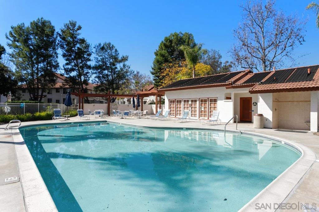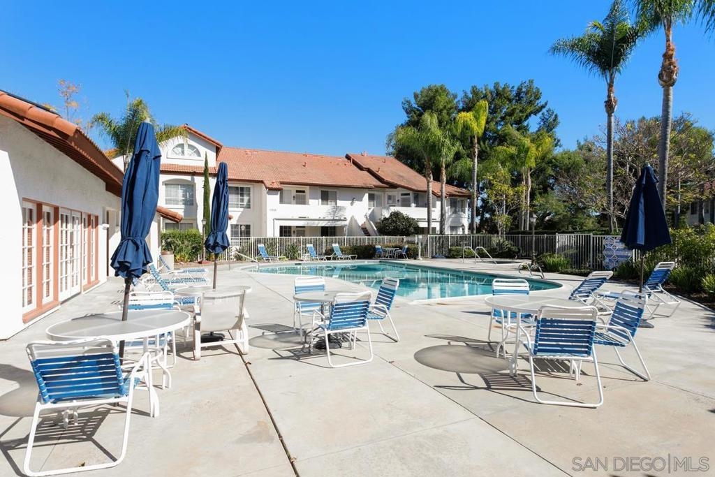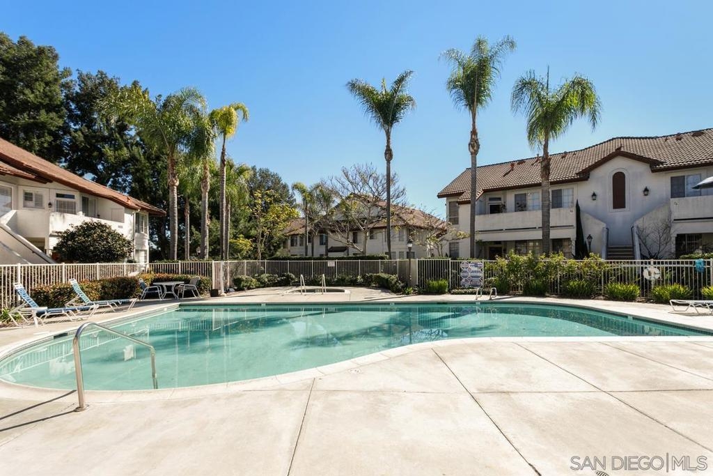 Desirable location near Sorrento Valley! This Canyon Bluffs condo features 2 bedrooms, 2 baths and a spacious patio with extra storage and closet with full sized washer and dryer hookups. It is ideally located in this community across the street from the heated community pool, and tucked away in the corner with more privacy. This home features dark laminate flooring, stainless steel appliances and new paint throughout. There is one parking space included, but plenty of other parking is available within the community. Canyon Bluffs is centrally located with easy access to Sorrento Valley, Mira Mesa shops, dining, and entertainment, as well as the 15, 805 and 5 freeways.