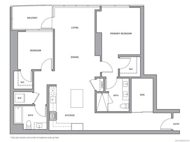 Welcome to Andia by Bosa Development. Now selling and already under construction with an anticipated completion date of fall 2027, Andia is the first new Downtown San Diego condominium high-rise in nearly 8 years. Featuring resort-like amenities and sophisticated interior design, the residences at Andia offer a seamless blend of style and comfort with the city as your backdrop. Residence 3801 is a west-facing 2 bedroom plus den boasting a split bedroom layout, integrated Bosch kitchen appliances with Zephyr hood, kitchen island with waterfall edge, polished chrome Kohler fixtures, Caesarstone quartz countertops with polished tile backsplash, primary bathroom with dual vanity sinks, and glass enclosed shower, two walk-in closets, front-loading full-size washer and dryer along with a spacious balcony featuring spectacular city & bay views. Andia by Bosa Development brings new heights to Downtown San Diego. Featuring modern design and resort-styled amenities, Andia soars 40 stories above the center of the city, showcasing 399 thoughtfully appointed 1- to 3-bedroom residences ranging in size from ~620 to ~1,729 square feet with two contemporary finish palettes. This is not an offer to sell but intended for information only. The developer reserves the right to make modification in materials, specifications, plans, pricing, designs, scheduling and delivery without prior notice. Renderings, photography, illustrations and other information described herein are representative only and are not intended to reflect any specific feature or view when built. No representation and warranties are made with regard to the accuracy, completeness or suitability of the information published herein.
