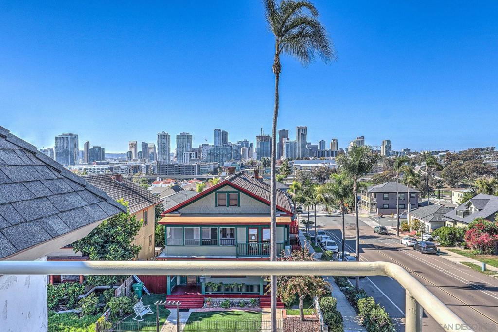 GOLDEN HILL – CITY VIEW First time on the market in nearly 30 years! This townhome overlooks the entire San Diego city skyline, with clear views from every floor. It is only a 3-minute walk to Golden Hill Park, the Community Garden, grocery and meat markets, a popular Mexican bakery, cocktail bars, and quality eateries. Petco Park and Gaslamp nightlife are within walking distance. All conveniently located near regional freeways. This spacious 1539 square foot townhome has 3 levels, including 2 large primary bedrooms, with full bathrooms en-suite and large closets. The top floor suite has a patio balcony and its own private entrance. The living room, dining, and kitchen level has an open plan with custom shutters, a 1/2 bath, and a walk-in pantry. The bottom floor is a large bedroom with en-suite bath and ample storage space. There is also a laundry adjacent to the entry. You’ll appreciate the under-unit gated 2-car garage. This north and west facing home is part of a stately 4-plex with a neighborly HOA to take care of the property so you can relax and enjoy.