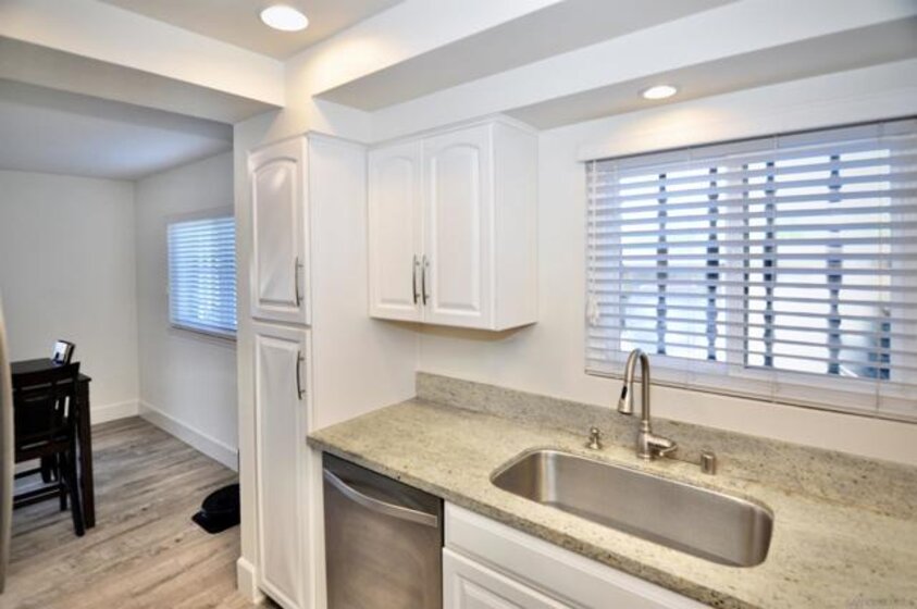 Beautiful, updated condo within steps of RB Swim and Tennis Club and all that Rancho Bernardo has to offer - Dining, Shopping, Library, Churches, and plenty of activities. This condo features gorgeous neutral, new flooring, a fresh, white kitchen with stone counters, stainless appliances and plenty of storage. The open concept living/dining area, has an added bonus of a lovely, private, outdoor, fenced in, garden space perfect for indoor, outdoor entertaining. Half bath downstairs. Upstairs are two comfortable bedrooms and a full bath, filled with natural light. There is one assigned carport with a storage area, plus easy street parking for guests. Laundry and Mailbox 13 covered steps from unit! HOA includes Wifi, Spectrum TV, DVR, Modem and premium channels (apps), Water, Trash, roof, and limited insurance. Additionally, annual fee that pays for premium membership to the Rancho Bernardo Swim & Tennis Club located just across the street. The club features a gym, pickleball and tennis courts, basketball courts, playground, karate and fitness classes, pools, and even a woodshop for hobbyists. Conveniently located near freeway access, this is your chance to enjoy North County living with resort-style amenities just steps from your front door. Come take a look. This one checks all the boxes!