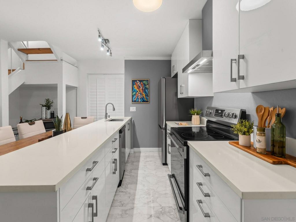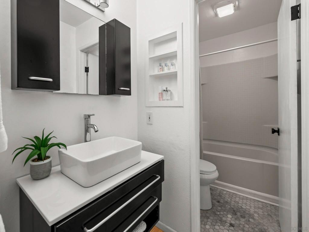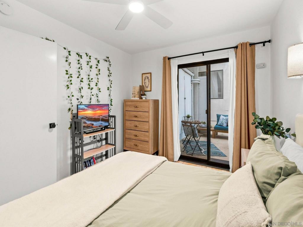 Experience the very best of San Diego coastal living in this rarely available, renovated two-level condominium ideally located directly on prestigious Sail Bay. Just steps from the sand, scenic boardwalks, bike and pedestrian paths, and calm bay waters perfect for kayaking, paddle-boarding, and swimming, this home offers an unmatched waterfront lifestyle in the heart of Pacific Beach. The entry level welcomes you with a spacious, light-filled living room featuring bamboo hardwood flooring, white plantation shutters, built-in shelving, and a discreet wet bar—ideal for entertaining after a day on the water. The thoughtful split-level layout leads down to the lower level, where a newly updated kitchen and open dining area create the perfect gathering space for friends and family. Two spacious primary suites are designed as a tranquil retreat; one offers direct access through sliding glass doors to your exclusive-use patio, where you can enjoy peek-a-boo bay views and the lush green park. From the patio, step directly onto the sand or unwind in the waterfront spa overlooking Sail Bay. The HOA does not currently restrict short-term rentals (city licensing requirements apply), offering flexibility for a primary residence, second home, or vacation rental opportunity. Just minutes from restaurants, shops, yacht and sailing clubs, and endless outdoor recreation, this exceptional bayfront home offers access to everything San Diego has to offer. Swim, sunbathe, stroll the iconic Sail Bay boardwalk, and enjoy breathtaking sunsets over the water—this is coastal living at its finest! Recent upgrades include a remodeled kitchen, bronze door hardware, new combination light and fan fixtures in the bedrooms, and a newer electrical panel. The bright, modern kitchen showcases stainless steel appliances, a newer refrigerator, quartz countertops, contemporary cabinetry, and luxury vinyl plank flooring. The bedrooms feature bamboo hardwood floors, ample closet space, and beautifully updated bathrooms. Additional community features include a furnished lobby entrance, gated underground parking, entry call box, garage laundry facilities with multiple machines, surfboard and paddle-board storage, bike storage, and oversized private storage lockers conveniently located behind your designated parking space. Don’t miss your chance to own this incredible Bayfront home in San Diego!