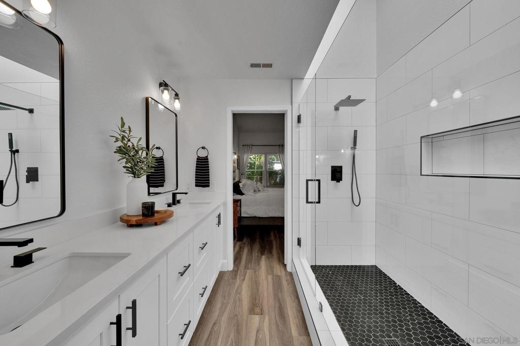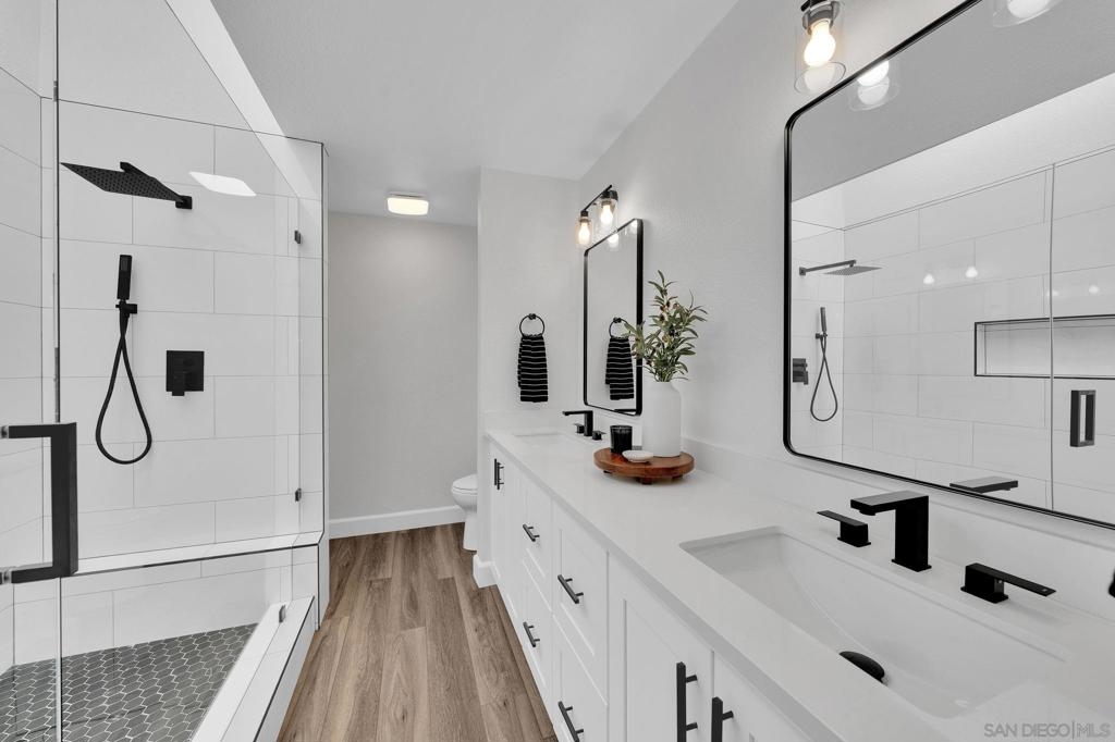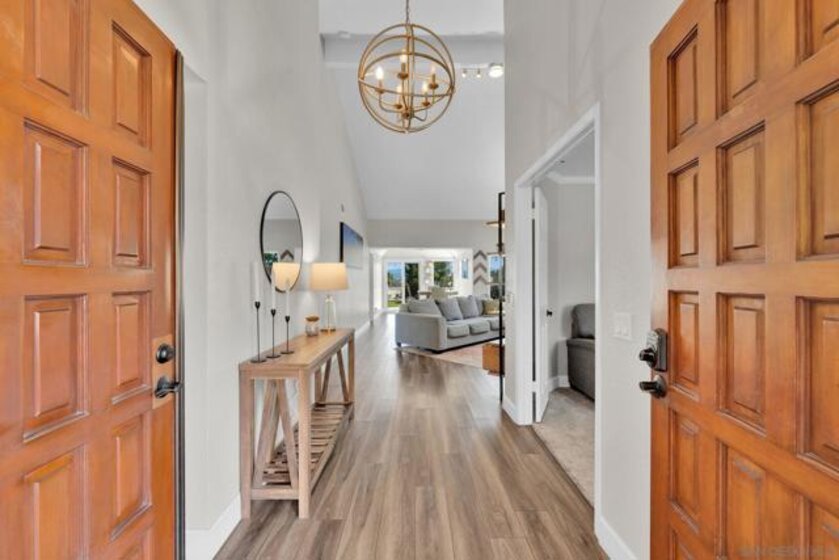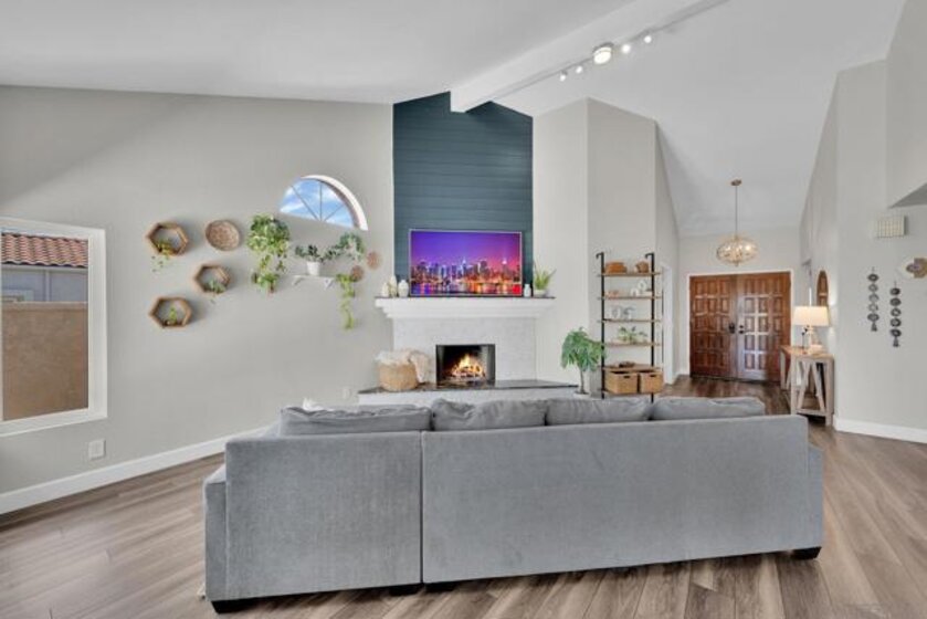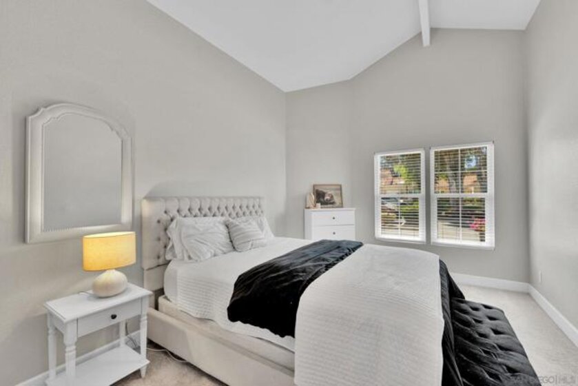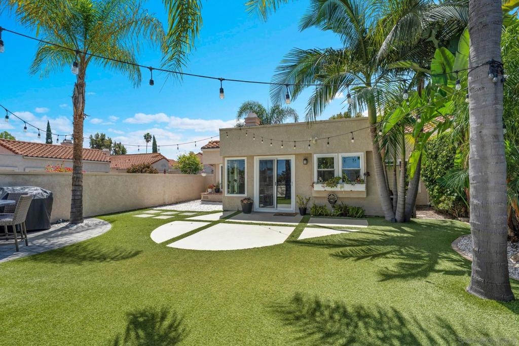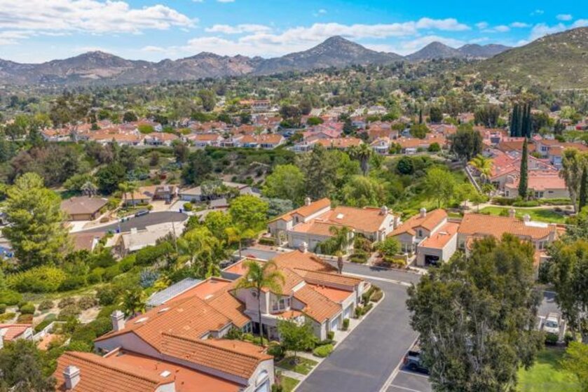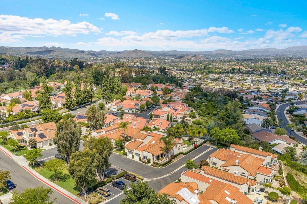 Truly spectacular 1 level end-unit condo with no rear neighbors & an expansive backyard showcasing panoramic city & mountain views. Spacious primary suite with vaulted ceiling, built-in window seat and a recently remodeled, stunning primary bathroom. Vaulted living room with fireplace, luxury vinyl flooring, inside laundry room, direct-access 1-car garage and access to Las Brisas & Community Association of Bernardo Heights amenities. Don’t miss this rare end-unit opportunity in a prime location. Exceptional single-level end-unit condo in Bernardo Heights offering privacy and breathtaking panoramic city and mountain views. Enter into the large living room with a vaulted ceiling and cozy fireplace that creates a warm, open gathering space. The primary suite is dream-worthy — very spacious with a vaulted ceiling, built-in window seat, and a recently remodeled stunning primary bathroom. Most rooms feature beautiful 7” luxury vinyl plank flooring and 5½” baseboards for a clean, modern look. The hall bathroom has an updated vanity, mirror and light fixture. Enjoy the convenience of an interior laundry room and direct access to your one-car garage. Outside, the large backyard is low-maintenance with turf, tropical plantings and the most amazing views — perfect for entertaining or serene morning coffee. Residents have full access to Las Brisas and The Community Association of Bernardo Heights amenities. Don’t miss this rare end-unit opportunity in a prime location.