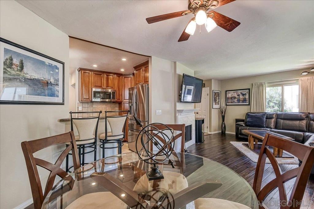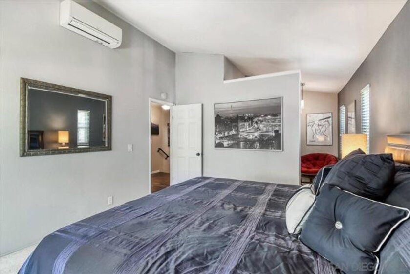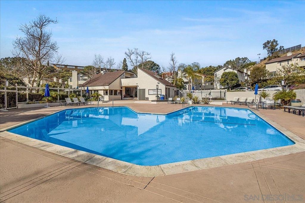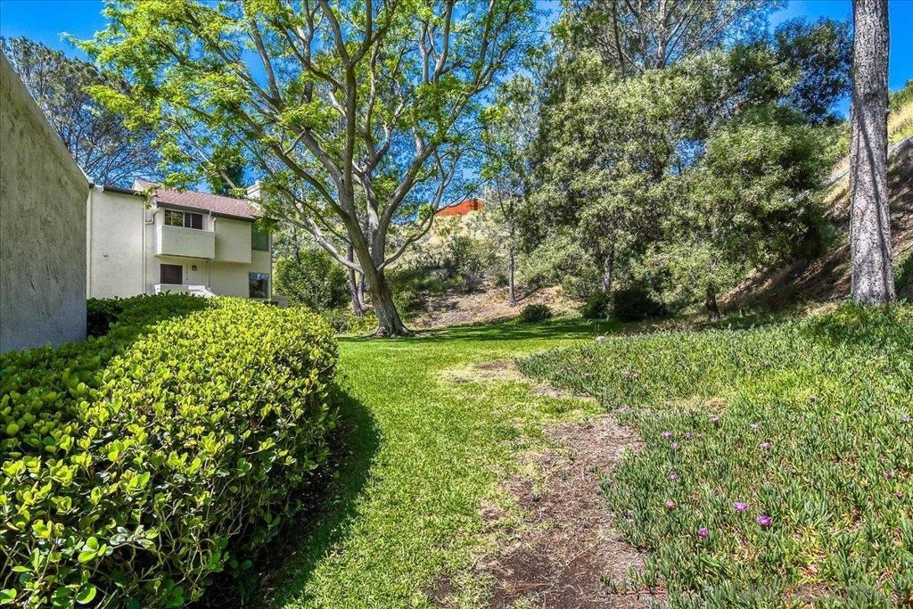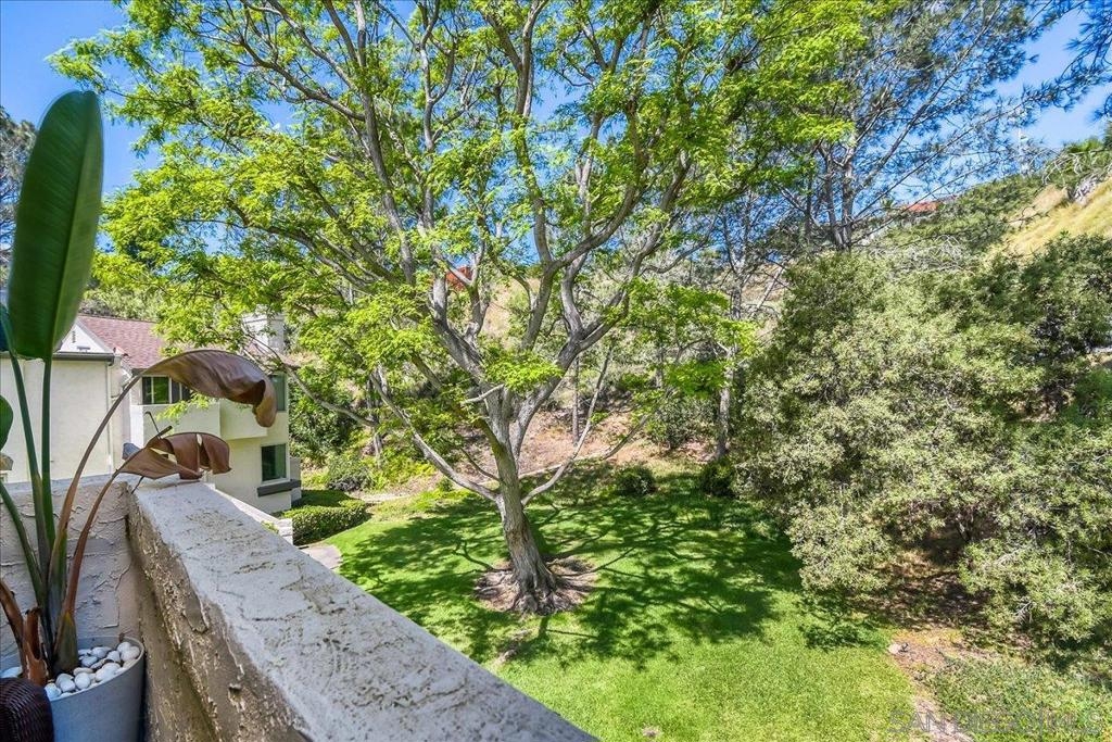 Spectacular location END unit town home with VIEWS in the highly desired complex of North Rim. Includes 2 bedrooms, 1.5 bath 1,098 square feet of living space. This prime peaceful park like location offers with direct access to the home. The Kitchen is upgraded with granite counters, custom cabinetry and stainless steel appliances. Beautiful laminate wood flooring on main floor. Custom stone textured wall in living room and custom stone fireplace. Mini split units with Heating and Air conditioning. Two decks offer outdoor living, vaulted master bedroom ceiling, and the greenbelt views add to its charm. Primary bedroom has a walk in closet and balcony. The Bathroom is remodeled with modern tiles, flooring and shower fixtures. Custom mirrored lighting. Large 2 car garage has custom flooring and a custom barn door with full size washer and dryer. Located above Fashion Valley, minutes drive to Mission Bay, Mission Valley, Downtown and within walking distance to Frances Parker & USD. North Rim includes resort style amenities with a gorgeous pool and spa, clubhouse for entertaining large groups and tennis courts.