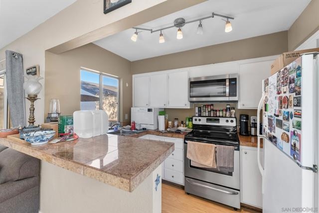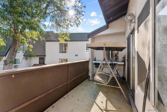 Charming upper-level unit offers an open floor plan with a bright living area, dining space, and a private balcony ideal for morning coffee or evening relaxation. Enjoy an upgraded kitchen featuring modern cabinetry, granite countertops, and stainless steel appliances. The spacious primary bedroom includes generous closet space, while the updated bathroom offers contemporary fixtures and stylish finishes. Upgraded with dual-pane windows, and assigned parking for added convenience. Located in a resort-style community with lush landscaping, you’ll enjoy two sparkling pools, a spa, clubhouse, fitness center, laundry facilities, and peaceful walkways along the nearby river. Easy access to shopping, dining, the trolley, SDSU, USD, and major freeways—plus just minutes to beaches and downtown—this home delivers an unbeatable blend of comfort and lifestyle.