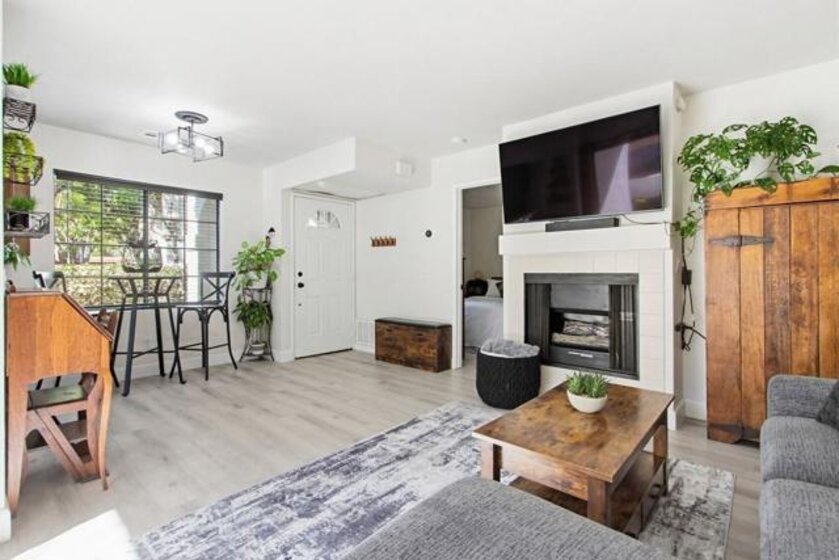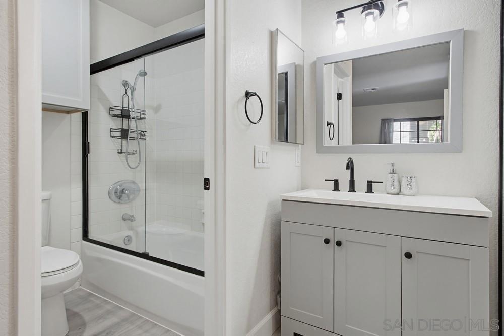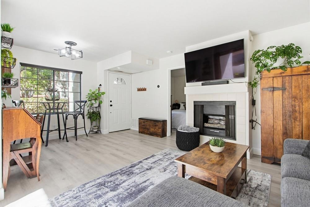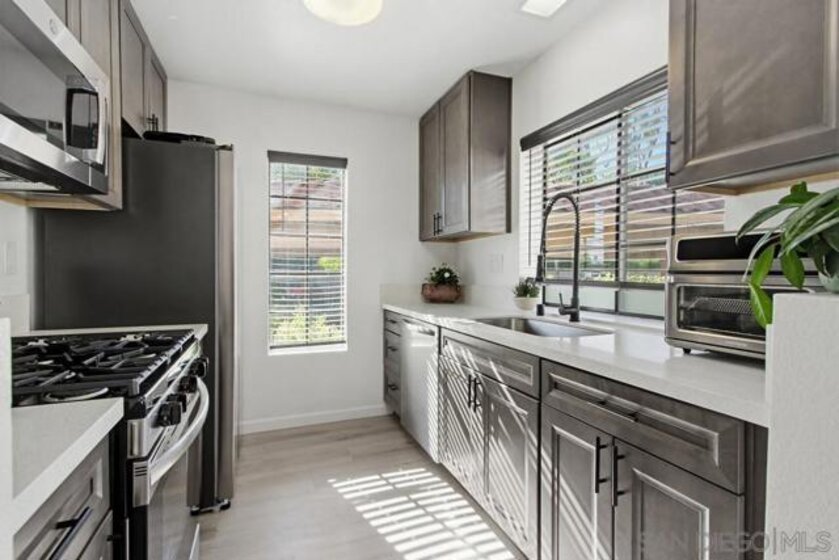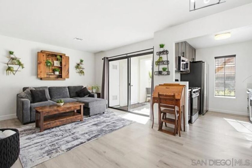 Bright, stylish, and move-in ready! This first-floor end unit in the Sun Ridge Vista community features a newly remodeled kitchen with quartz countertops and stainless steel appliances, luxury vinyl flooring throughout, and an upgraded bathroom. Enjoy abundant natural light, added privacy as an end unit, and the convenience of in-unit stackable laundry. Central A/C and heating are less than three years old. A thoughtfully updated home designed for modern, easy living. The community offers resort-style amenities including three pools and spas, a gym, and a sauna. Located within the award-winning Poway Unified School District, with a convenient location near shopping and easy access to freeways 15 and 56.