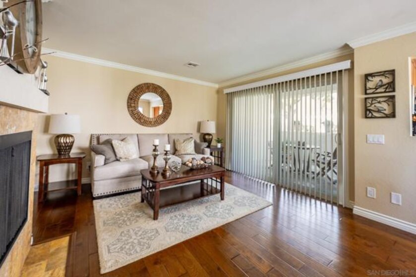 Welcome home to your private retreat! This meticulously maintained single-level, ground-floor condo offers 2 spacious bedrooms and 2 full bathrooms, each with generous closet space. The inviting layout flows seamlessly to a finished private patio — perfect for morning coffee or evening relaxation. Enjoy modern comforts including engineered wood floors, newer HVAC, a cozy gas fireplace, in-unit laundry, and a hot water heater with extended warranty. The community enhances your lifestyle with three sparkling pools, soothing spas, an exercise room with sauna, and lush landscaped walking paths. Located in the award-winning Poway School District, this VA and FHA approved complex provides covered parking plus ample guest spaces. With easy access to shopping, dining, parks, and major highways, this condo is move-in ready and waiting for you! This is the one! Single-level, ground-floor condo with 2 bedrooms, 2 baths, engineered wood floors, newer HVAC, cozy fireplace, and in-unit laundry. Enjoy a private patio plus resort-style amenities: 3 pools, spas, fitness center with sauna, and lush walking paths. Covered parking, VA/FHA approval, award-winning Poway School District, and adjacent to Sun Ridge Vista Park with playgrounds, courts, and trails. Comfort and convenience in Rancho Peñasquitos!