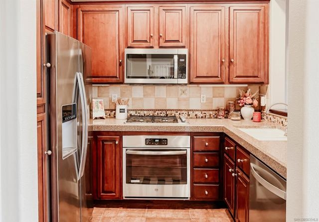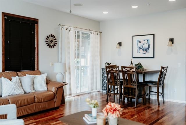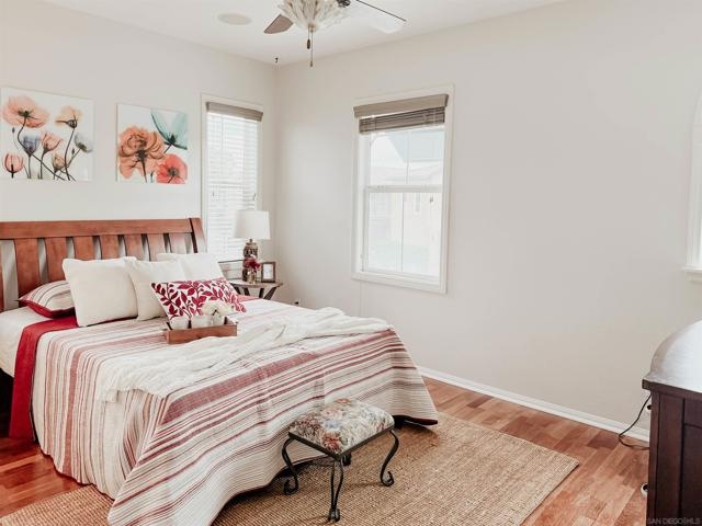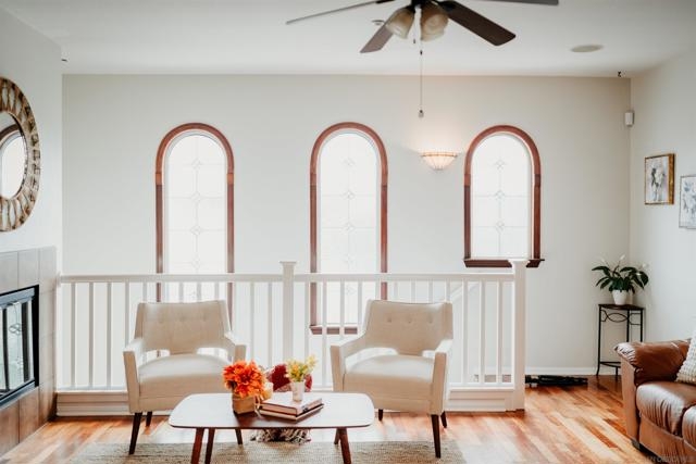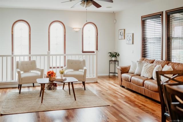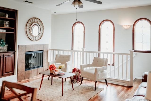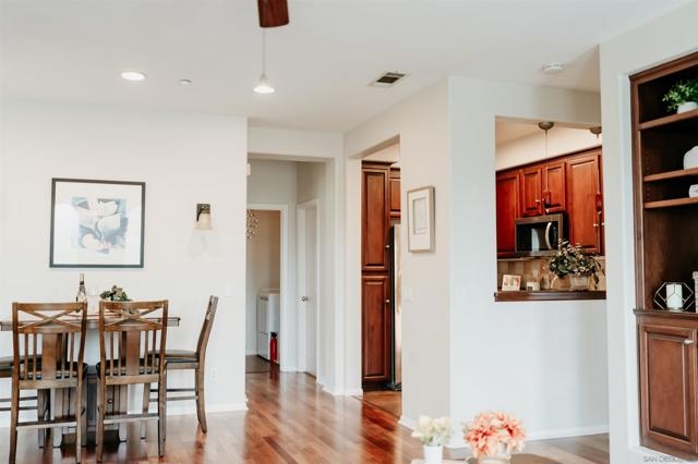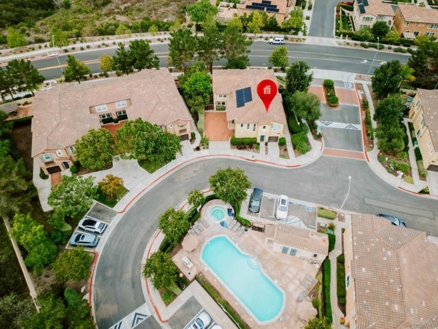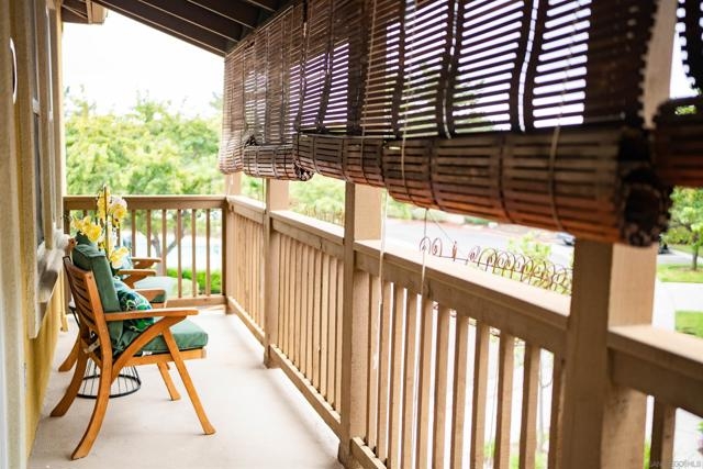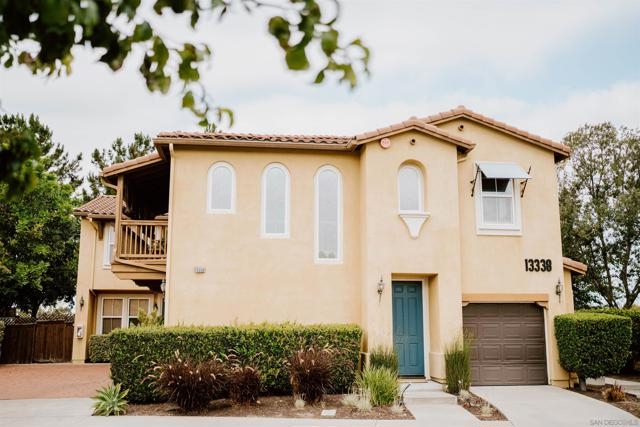 This beautifully maintained townhome features an open floor plan with high-end touches throughout, including upgraded kitchen counters, refinished hardwood floors, ceiling fans, designer paint, a private balcony, and a cozy fireplace in the living/dining area. All living spaces are located on the second floor with direct access from the attached 1-car garage.The master suite includes a spacious walk-in closet . The home comes with a dedicated laundry room for convenience. With FULLY PAID SOLAR to offset electricity costs and zoning for the top-rated Poway Unified School District, this home offers both comfort and value.Recent updates include NEM 2.0 based solar panels (2023), brand new EV charger (2025), Cooktop (2025) Water heater (2023). Ideally situated in one of the best locations within the Monaco complex, residents enjoy community amenities such as a sparkling pool and spa, along with close proximity to shopping, dining, parks, schools, and easy freeway access. Torrey Meadows Park and the highly ranked West View High School are just few blocks away.