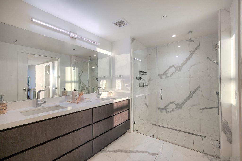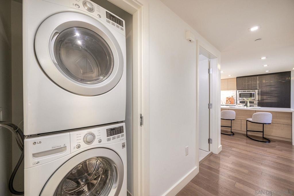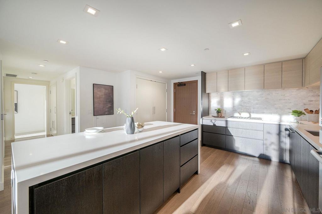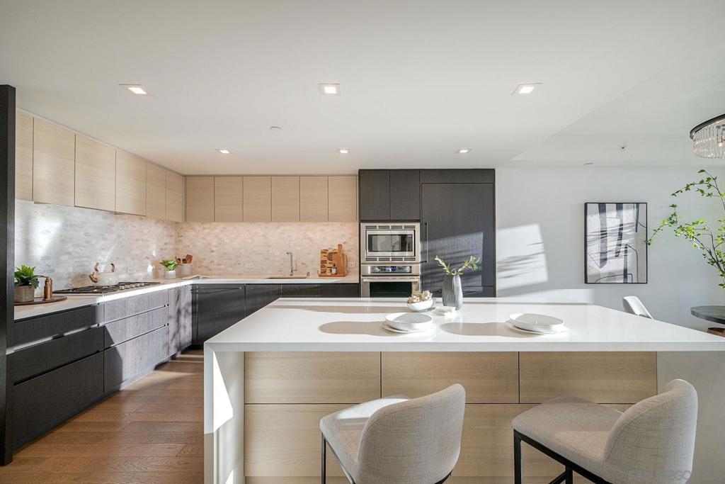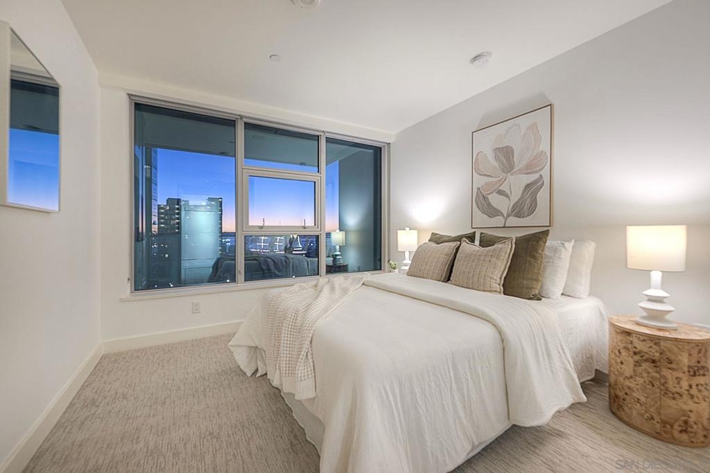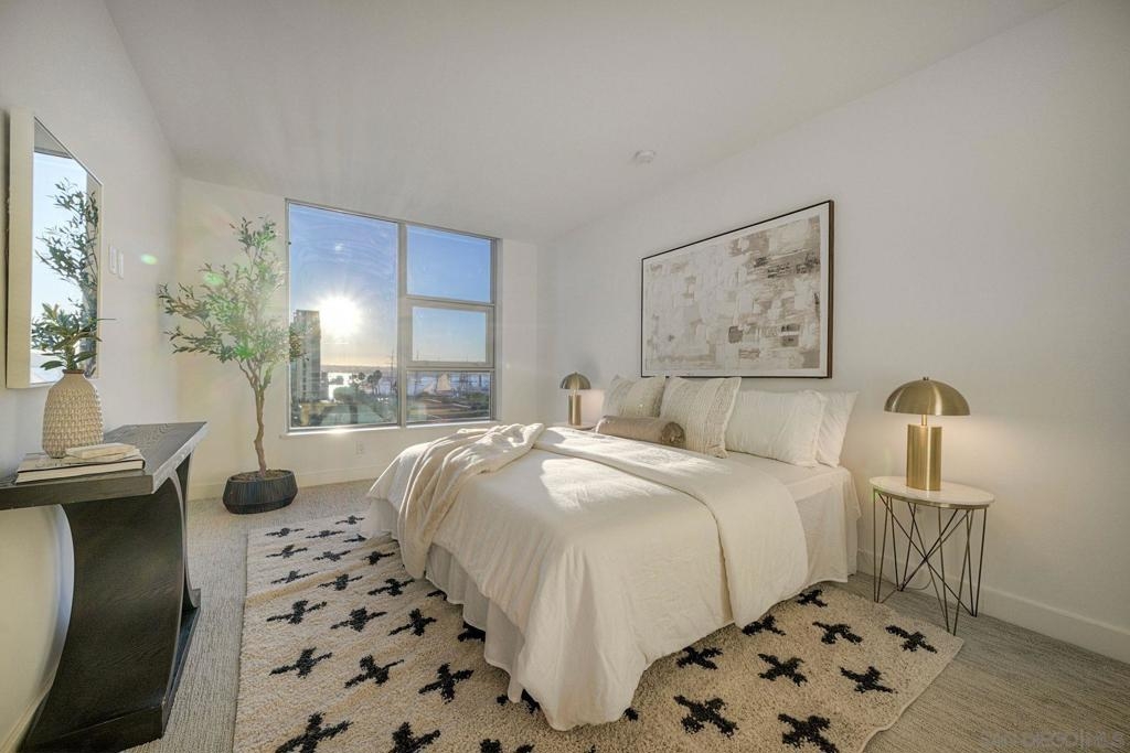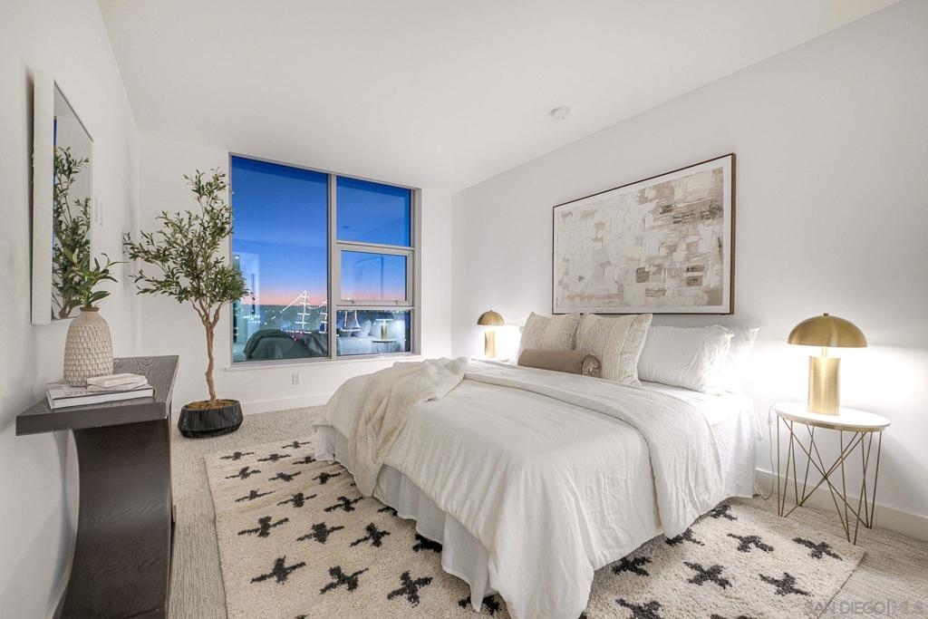 Welcome to Savina – Downtown’s premier luxury high-rise living next to Little Italy and the Bay! This stunning west-facing 2BR/2BA residence sits on the 6th floor, with sweeping bay and city views from every room. The open-concept kitchen features white quartz countertops, Thermador appliances, a spacious island, and ample storage, perfect for both everyday living and entertaining. The primary suite offers a generous walk-in closet, with a spacious 2nd bedroom with bay views. Enjoy sunsets and sparkling city lights from your private balcony. 1 Reserved Parking Spot + 1 Private Storage Room. Hardwood floors throughout kitchen and living room and brand new high end carpets in bedrooms. Residents of Savina enjoy resort-style amenities, including a pool & spa, state-of-the-art fitness center with yoga deck, steam & sauna rooms, a resident lounge, outdoor BBQs, pet retreat, conference room, and 24-hour concierge service.