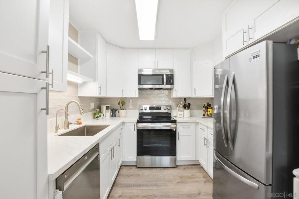 Beautifully upgraded Hillcrest/Bankers Hill condo—style meets convenience! Over $55,000 in upgrades bring comfort and character to this inviting home. Custom built-ins add style, storage, and cozy seating, while wainscoting, solid wood Craftsman-style doors, and custom door frames elevate the design throughout. The home features quartz counters, recessed lighting with dimmers, and smart switches for modern ease. The primary bedroom is enhanced by a custom shiplap feature wall with integrated sconces, and USB charging outlets. The living space has custom built in wall unit and built-in window seat with storage. Enjoy peace and privacy with soundproofed adjoining walls and ceilings, plus quiet ceiling fans. The updated walk-in tile shower adds spa-like touches, and laundry is conveniently inside the home. This condo is an end unit with windows on three sides. From the building's shared balcony on the 4th floor you can see fireworks from the Padres and Sea World. The building itself offers even more: pool, parking, elevator, secure lobby, exterior maintenance, storage bay in garage, and low-cost HOA that includes water. All of this is just steps from Balboa Park, the San Diego Zoo, Seven Bridges Trail, restaurants, cafes, shops, and more. Experience the charm —come see for yourself!