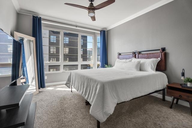 GREAT OPPORTUNITY to own the ** lowest priced 3 bedroom in 92101/92103/92104/92116 ** Welcome to Union Square, where urban convenience meets contemporary comfort. This 5th-floor corner unit is flooded with natural light through expansive windows and features soaring 9-foot ceilings that create an airy, open feel. A true rarity downtown, this is a full **3-bedroom residence—not a 2-plus-den/loft—** with generously sized rooms, an open-concept layout, ample storage throughout, and gorgeous views of the city & Coronado Bridge! The primary suite offers an ensuite bath and a large walk-in closet with built-ins. Both bathrooms feature shower/tub combos, granite vanities, and updated modern lighting. Additional highlights include central AC and heating, two parking spaces with a storage cage above, and a seamless flow between the living, dining, and kitchen spaces—perfect for everyday living or entertaining. Step outside your door and enjoy all that Downtown San Diego has to offer. You’re just steps from San Diego City College, a short walk to Petco Park, and positioned near the highly anticipated East Village Green (Phase 1 opening in 2025). Union Square is a pet friendly building and residents enjoy resort-style amenities, including a fully equipped fitness center with sauna and jacuzzi, BBQ areas, a community lounge and party room, EV charging stations, and a year-round calendar of social events. Onsite management ensures peace of mind, while the vibrant East Village location keeps the best of downtown dining, culture, and entertainment within easy reach.