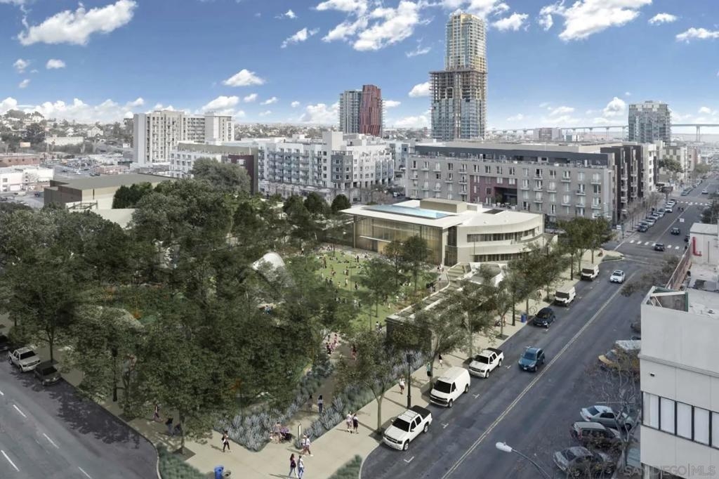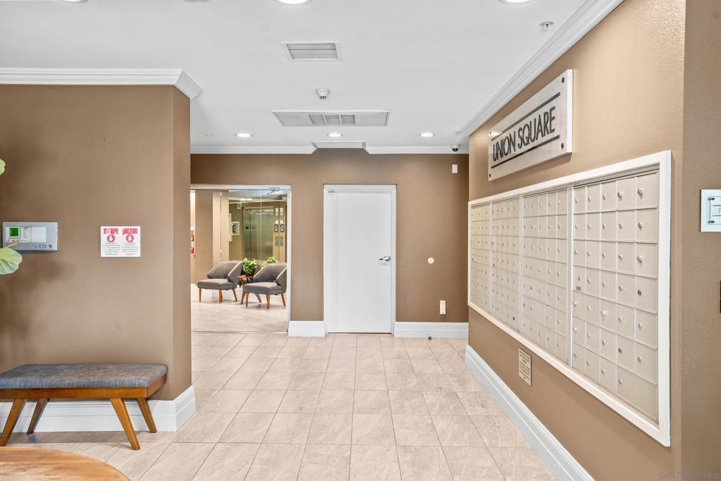 Beautifully remodeled home with premium upgrades, a functional layout and a truly move-in-ready finish. Located one block away from the 4.1 acre East Village Green, currently under construction. This spacious condo features a highly desirable split floor plan that ensures privacy and versatility—perfect for accommodating roommates, hosting guests or creating a dedicated home office. The brand-new gourmet kitchen features Classic Calacatta quartz countertops, a Kohler farmhouse sink and KitchenAid stainless steel appliances. The open-concept living area is large and inviting, enhanced by plantation shutters and new LED lighting throughout. Both bathrooms have been stylishly renovated, and new plush carpeting adds warmth and comfort throughout the bedrooms. Stay cool year-round with the new 2-ton HVAC system and Nest thermostat, offering modern energy efficiency. This condo offers ample storage with multiple closets and cabinets including two large walk-in closets adjacent to the bedrooms. Union Square Condominiums deliver exceptional value with below-average HOA fees. Amenities include a fitness center, pool, sauna, clubhouse with a pool table, and courtyards with BBQs. The HOA also covers key utilities such as water and trash, adding even more value for homeowners. An on-site property manager ensures smooth day-to-day operations, while multiple communal EV charging stations make powering your electric vehicle easy. With a Walk Score of over 90, this property is ideally located one block away from the 4.1 acre East Village Green and right next to San Diego City College with convenient access to major freeways: 163, 5, and 94. Adding to the neighborhood’s safety and peace of mind, the San Diego Police Department (SDPD) headquarters is located directly across the street. The East Village Green 4.1 acre new park is currently under construction and a wonderful addition to the area! East Village Green will include a community center, children’s park, off-leash dog areas, cafés, plazas, multiple lawn areas, a performance pavilion and underground parking.