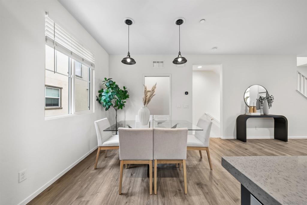 VA approved! Welcome to this a light & bright 3-story townhome featuring a neutral color palette, stylish wide-plank flooring, an open-concept main level offering a modern kitchen with breakfast bar, perfect for casual dining & entertaining and a balcony for morning coffee or evening relaxation. Retreat to the spacious primary suite with large bath and walk-in closet. Access to wonderful community amenities including a sparkling pool, spa, and park/recreation area. Conveniently located to shopping & dining and easy freeway access! Modern living meets effortless comfort in this beautifully designed home!