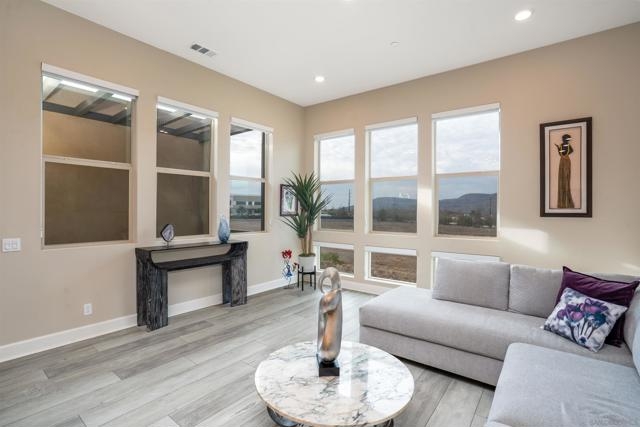 Beautiful dual-suite Avante Plan 3 home located in the 55+ gated community of Del Sur. This 2019-built residence offers a bright, open-concept layout with high ceilings, wide-plank upgraded flooring, recessed lighting, and custom shutters throughout. The gourmet kitchen features quartz countertops, stainless steel appliances, modern backsplash, abundant cabinetry, and a large center island overlooking the dining and living areas. Both bedrooms are private suites with walk-in closets and spa-inspired bathrooms. Additional highlights include a private in-home elevator for effortless access, a finished 2-car garage, spacious laundry room, and inviting outdoor spaces including a balcony and patio. Avante residents enjoy exclusive access to a resort-style clubhouse, pool, spa, fitness center, lounge, game room, BBQ area, and fire pits. As part of Del Sur, homeowners also have access to 11 community pools, 14 parks, walking trails, and nearby shopping and dining at the Del Sur Town Center. This home offers an exceptional blend of luxury, convenience, and 55+ lifestyle living.