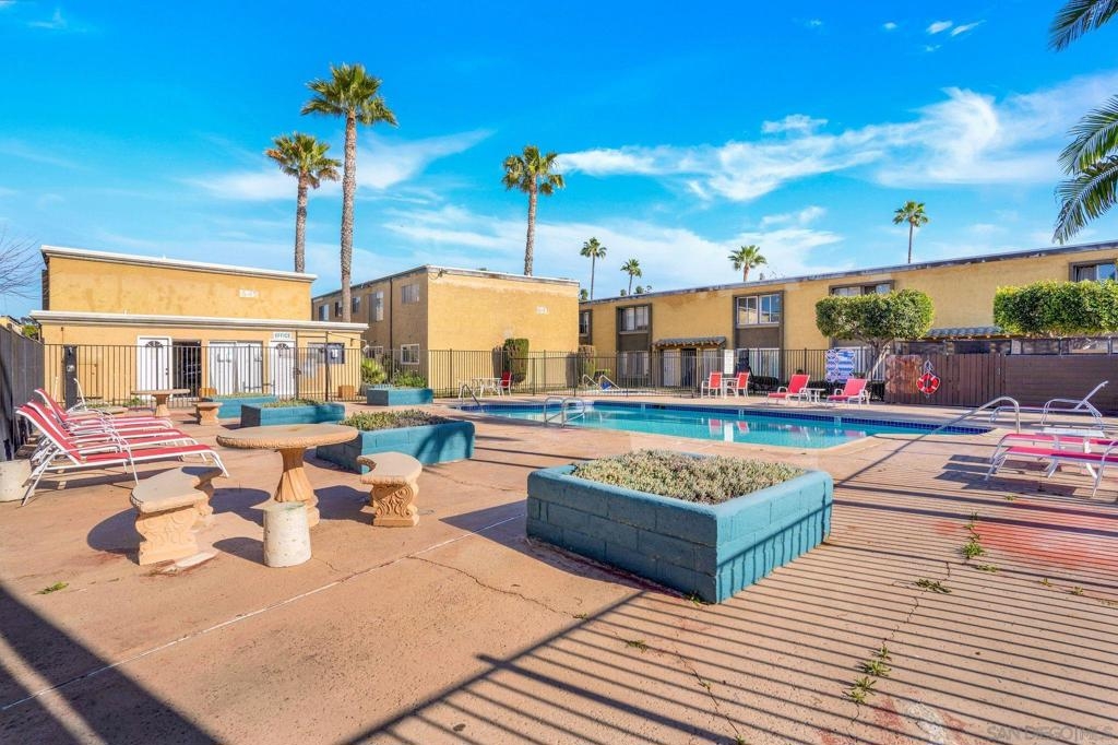 3.250 % VA assumable loan. Welcome home to this freshly painted, upgraded end-unit located in the gated Harbor Vista community. This desirable one-bedroom, one-bath residence offers modern comfort and convenience, featuring an in-unit washer and dryer, newer kitchen appliances, recessed lighting, granite countertops, and a stylish decorative backsplash. Residents enjoy a host of community amenities, including an assigned parking space, two heated pools with spas, a picnic area, laundry facilities, and a clubhouse. HOA fees conveniently cover water, hot water, trash, security, and pool maintenance. Ideally situated just steps from Euclid Avenue’s restaurants, banks, gym, and everyday conveniences, with easy access to CA-94. Located less than 10 minutes from Downtown and Mission Valley, and just minutes from major military bases—this home offers the perfect blend of comfort, privacy, and unbeatable accessibility.
