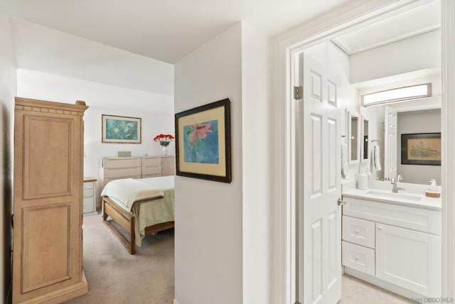 Surrounded by the serene setting of Oaks North Villas, this single-story residence offers an ideal blend of simplicity and sophistication. With recent upgrades throughout and private outdoor retreats, it’s designed for effortless living in a vibrant 55+ community. A freshly landscaped front patio sets a welcoming tone before stepping through the front door. Inside, soaring vaulted ceilings and all-new (2023) Anlin dual-pane windows and sliding doors fill the home with light, while updated fixtures and finishes (See supp) add a touch of modern elegance. The 2-bedroom, 2-bath floorplan offers both convenience and privacy, complemented by a private 1-car garage. The kitchen shines with espresso cabinetry, granite countertops, a new refrigerator and dishwasher, and a breakfast bar that opens seamlessly into the dining and living areas—perfect for entertaining. Both bathrooms have been stylishly refreshed with quartz counters, new vanities, and modern Kohler fixtures. Additional upgrades include a new HVAC system with updated ducting (2023), a new water heater (2024), new washer (2024), freshly painted doors/baseboards, new hardware, and updated secondary bedroom with fresh paint, carpet, and closet doors (2024). Distressed wood-style flooring adds warmth, while plush carpeting provides comfort underfoot. Two private patios extend your living space—one at the entry and a second off the living room and primary suite, upgraded with new porcelain tile and backing to a peaceful greenbelt. The perfect spot to enjoy your morning coffee or San Diego’s year-round sunshine. Life in Oaks North means more than just a beautiful home. Residents enjoy access to the Oaks North Community Center, with resort-style amenities including a heated pool and spa, tennis and pickleball courts, fitness center, lawn bowling, ceramics studio, woodshop, and a full calendar of clubs and activities. Move-in ready and priced to sell, this turnkey townhome is your opportunity to enjoy the best of San Diego’s 55+ lifestyle in a tranquil and welcoming setting.