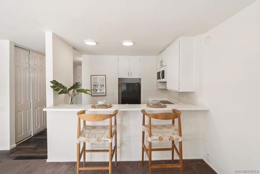Affordable coastal living in the heart of Pacific Beach. VA approved! This resort-style studio at The Plaza delivers exceptional value w/ a full kitchen, secure parking space #137 in the gated garage, and an oversized 5 ft X 7 ft patio overlooking the pool and courtyard on the quiet side of the building. Walk to dining, shopping, and nightlife along Garnet Avenue, and enjoy easy access to the beach less than 2 miles away. To create immediate financial advantage, with a full price offer Seller will prepay 1 full year of HOA dues (suppl) ($727/month, over $8,700 in savings + additional credit to total $10,000) or simply offer a $10,000 credit that can be applied towards the buyers closing costs, HOA dues, or a combination of both. This flexible credit structure delivers real upfront savings—often more impactful than a traditional interest rate buy-down—allowing buyers to preserve cash and reduce their first-year ownership costs. Inside, the thoughtfully designed layout lives larger than expected, featuring a spacious entry ideal for storage, a full-size kitchen with eat-at bar, and an open living area with flexibility for sleeping, living, and work-from-home zones. Recent upgrades include a new electric panel, updated bathroom with quartz counters and modern finishes, and upgraded lighting throughout. The Plaza is known for its unmatched amenities, including 4 pools, 5 tennis courts, gym, sauna, community theater/ library/ and common area spaces surrounded by beautifully maintained grounds that create a true resort-style environment. Whether you're a first-time buyer, active duty military, investor, or looking for a low-maintenance beach retreat, this is one of the most compelling value opportunities in all of Pacific Beach.
