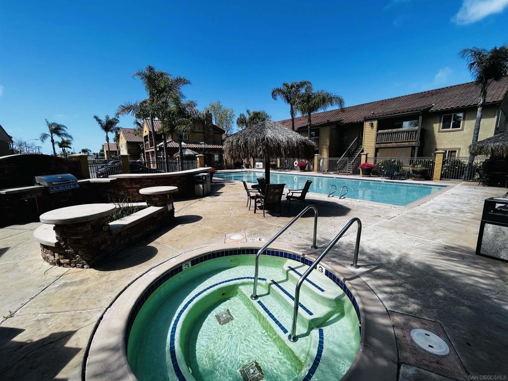 Spacious 1 bedroom downstairs unit that is in move-in condition. Custom kitchen with granite counter tops and high-end appliances. Conveniently located to imperial Beach and Coronado beaches, Hwy 5 and the border. Clubhouse, BBQ area, pool and jacuzzi, and playground. Patio and designated parking space with covered off-street parking for a guest. Gated community. Refrigerator and built-in microwave convey. VA approved.