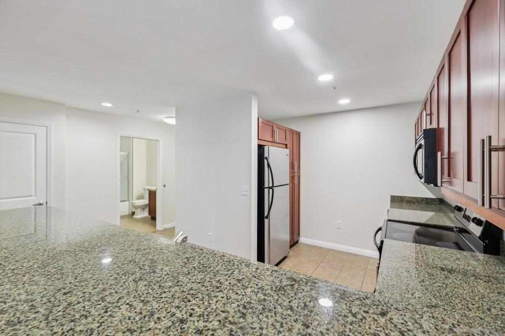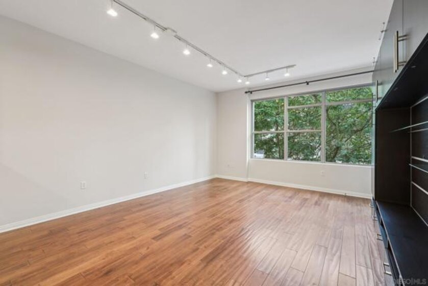 Experience the vibrant energy of East Village in this spacious 1-bedroom, 1-bath residence just steps from Petco Park, top dining, nightlife, and the scenic waterfront. The open living, dining, and kitchen layout is perfect for entertaining, flowing seamlessly to a large covered balcony with tranquil treetop views—ideal for morning coffee or evening unwinding. The chef-inspired kitchen boasts granite counters, abundant cabinetry, breakfast bar seating, and stainless steel appliances. Retreat to the king-sized bedroom, complemented by a roomy bath and excellent storage. Added conveniences include in-unit laundry, a dedicated storage unit, and secure parking. Residents enjoy premium amenities such as a BBQ deck, fitness center, and community room. With easy access to the Gaslamp Quarter, Seaport Village, Little Italy, and nearby beaches, plus close proximity to the trolley, train, and airport, this home offers the ultimate in urban living and convenience.
